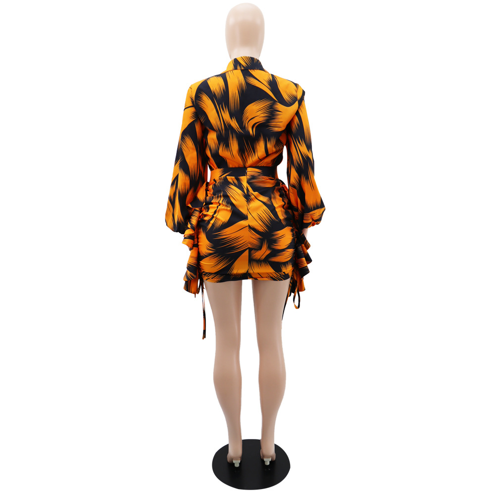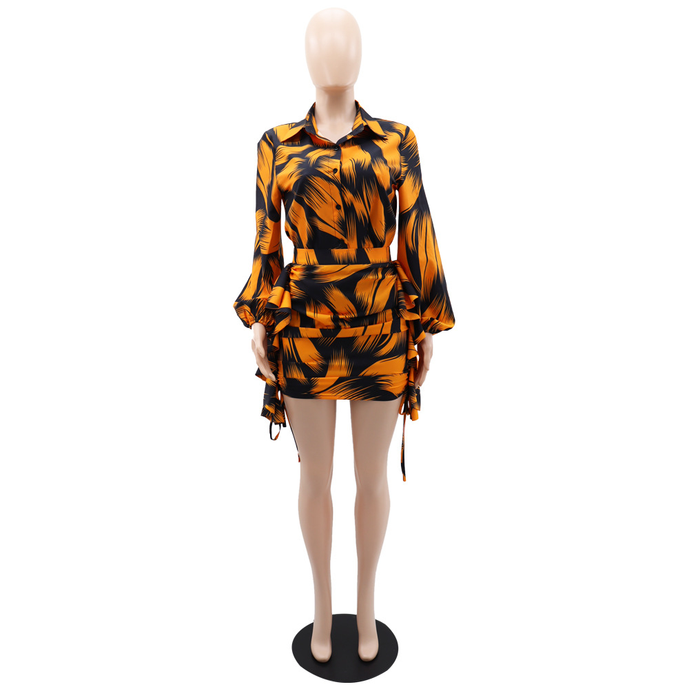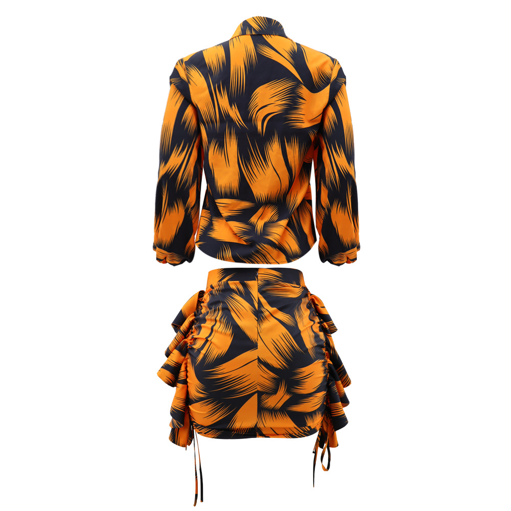 All Matching Shirt Printed Sexy Hip Skirt Elegant Women Two Piece Set