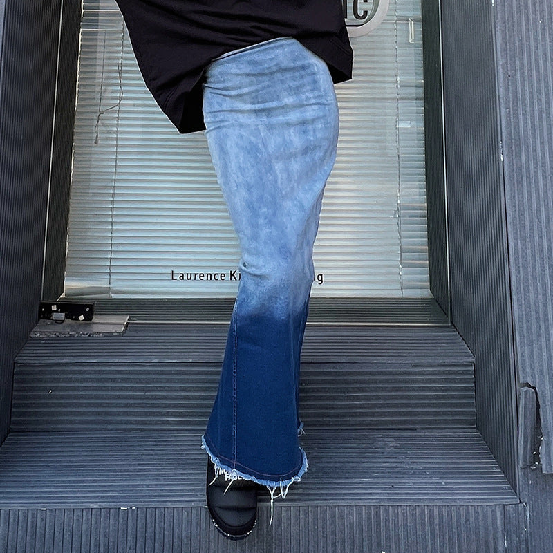 Australian Brand Design Blue Gradient Skirt High Waist Sheath Split Dress for Women
