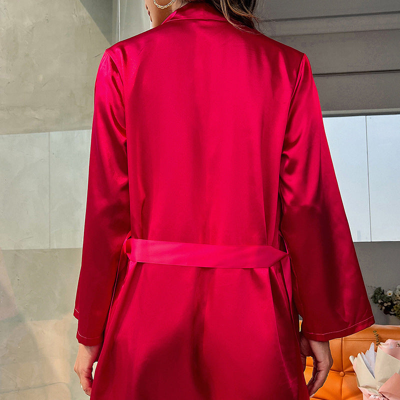 Autumn Long Sleeve Sexy Nightgown Cardigan Temptation Artificial Silk Bathrobe Home Wear Sexy Sleepwear