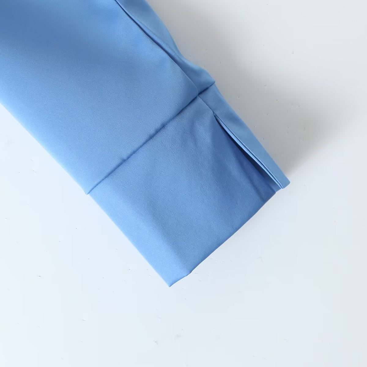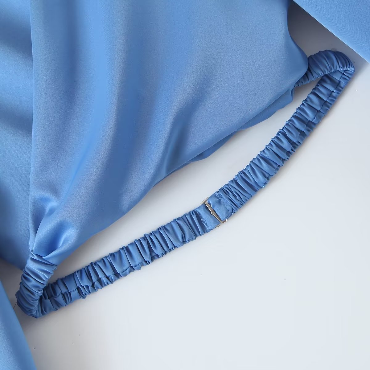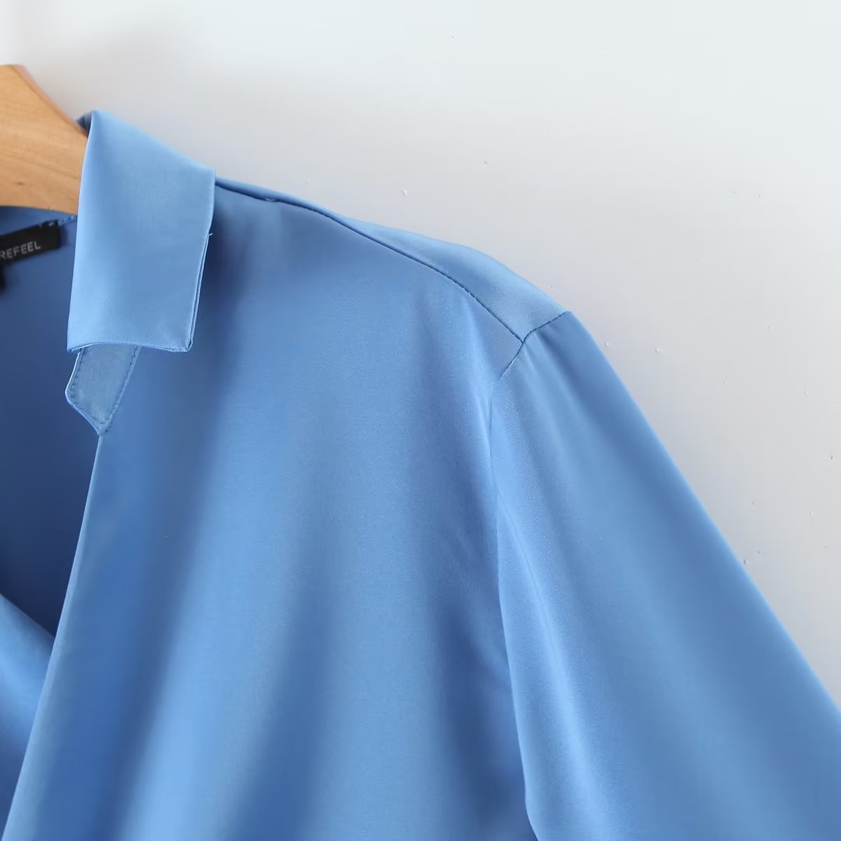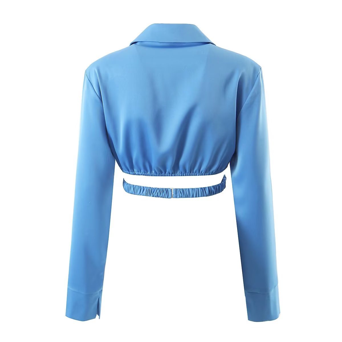 Autumn Pullover Long Sleeve Collared Slim Short Cross Metal Buckle One Piece Wrap Shirt