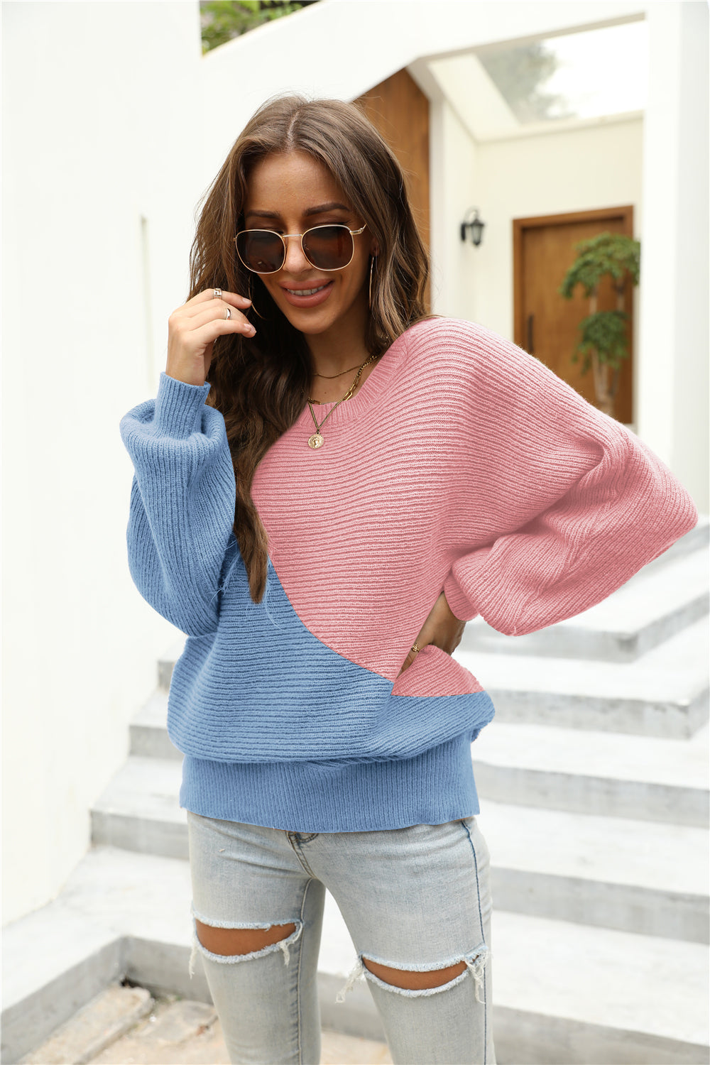 Autumn Winter Autumn Winter Women Stitching Personality Plus Size Women Batwing Knitted Women Sweater