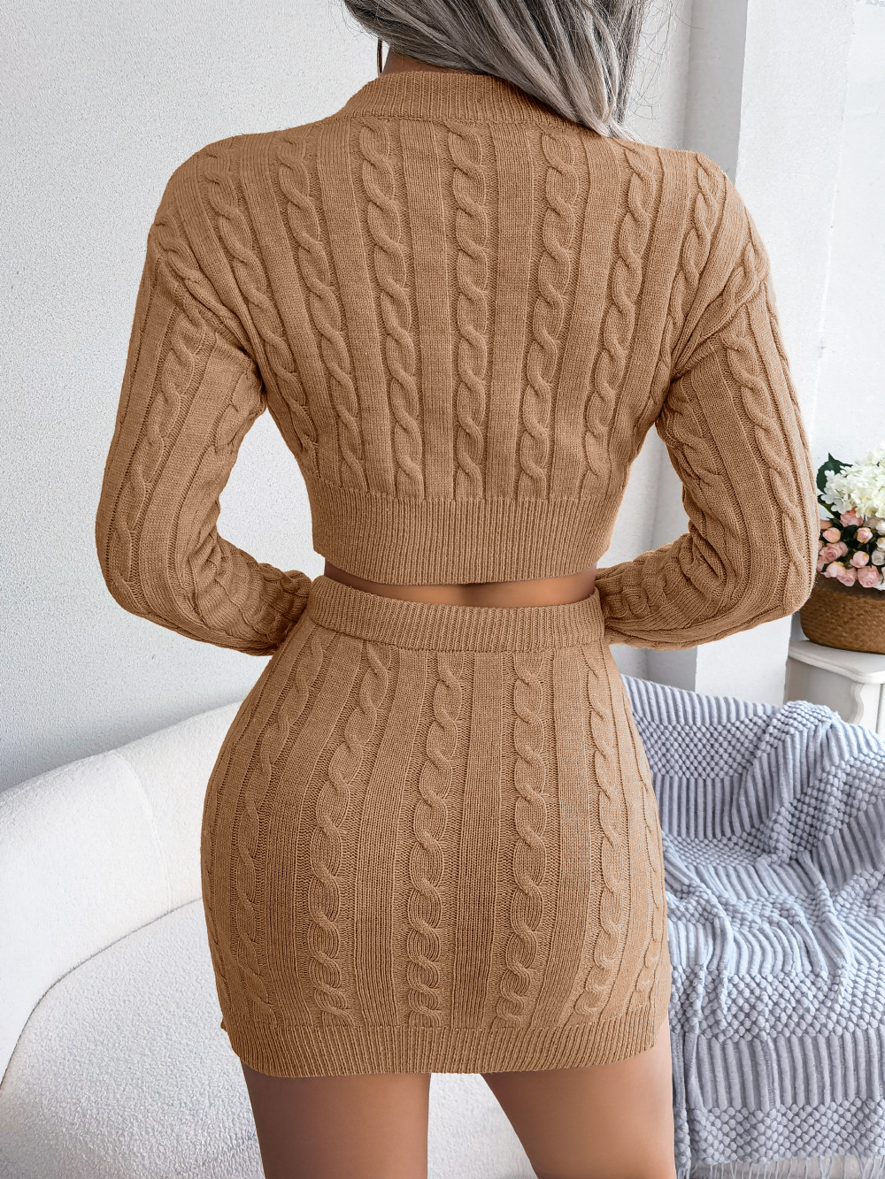 Autumn Winter Casual Twist Cropped Baring Sweater Hip Skirt Women Clothing