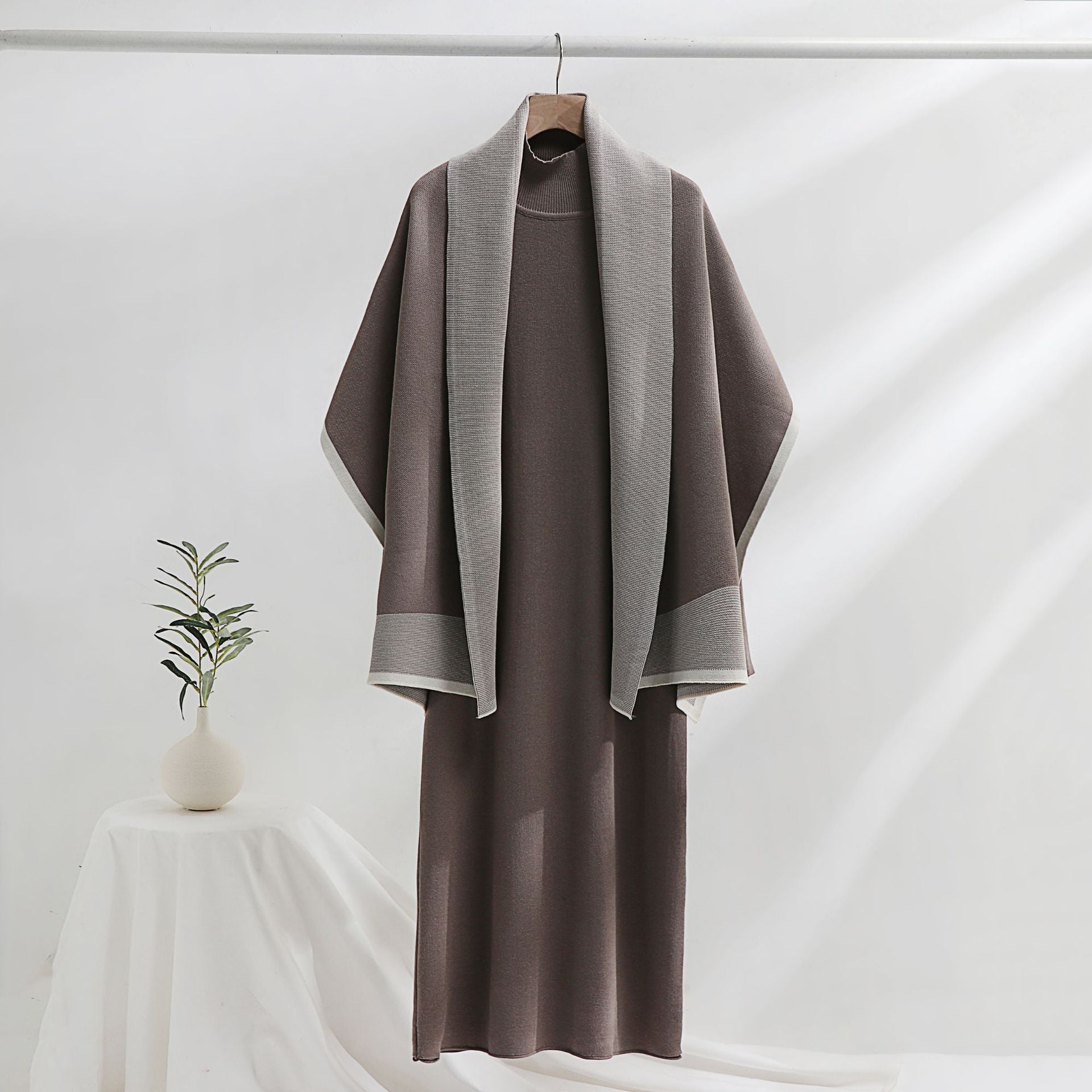 Autumn Winter Knitted Dress Two Piece Set Plus Size Girl Loose Dress Elegant Suit