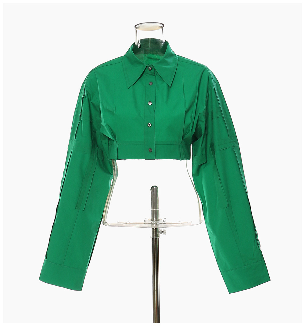 Autumn Winter Personalized Cropped Stitching Short Shirt Top for Women