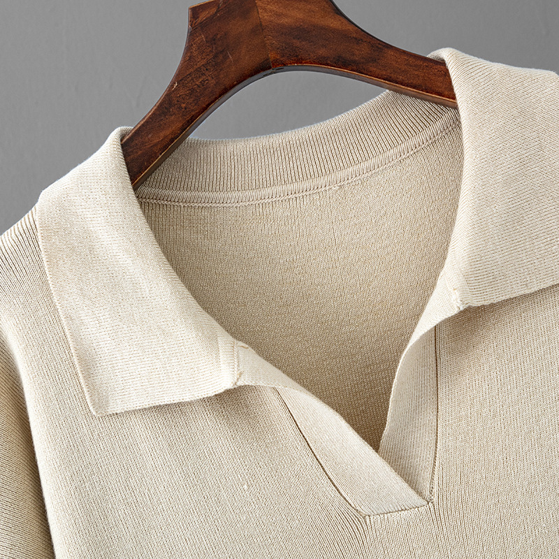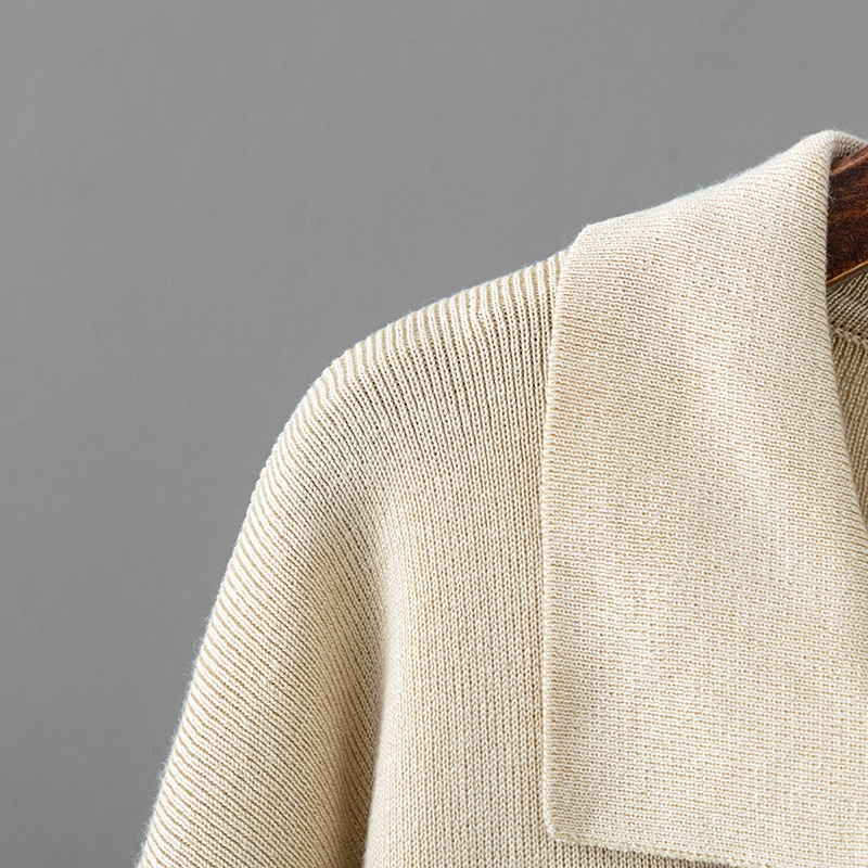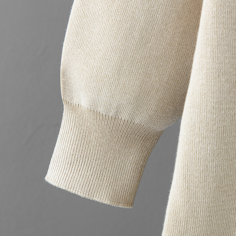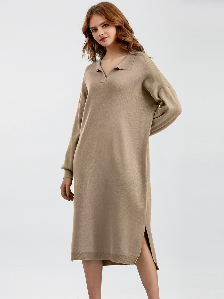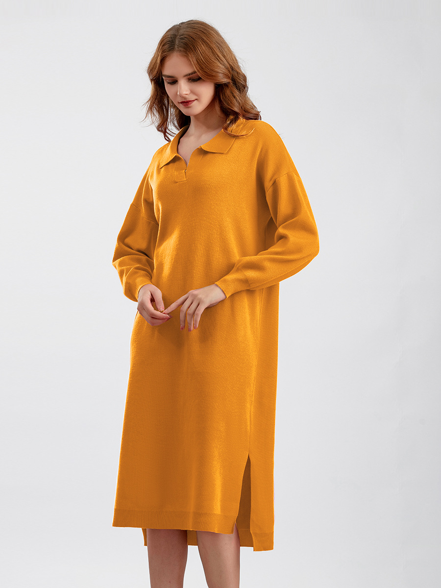 Autumn Winter Polo Collar Base Knitting Loose Solid Color Women Dress