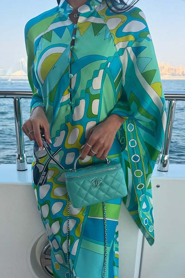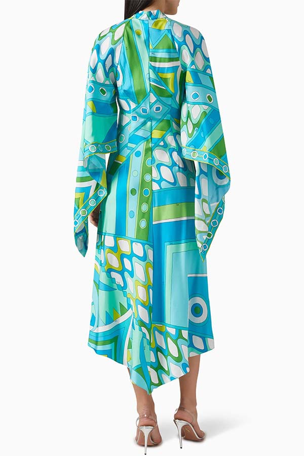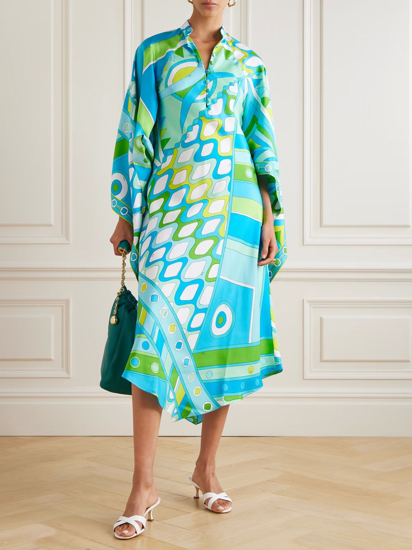 Autumn Winter Positioning Printing Long Sleeve Stand Collar Dress Loose Party Dress
