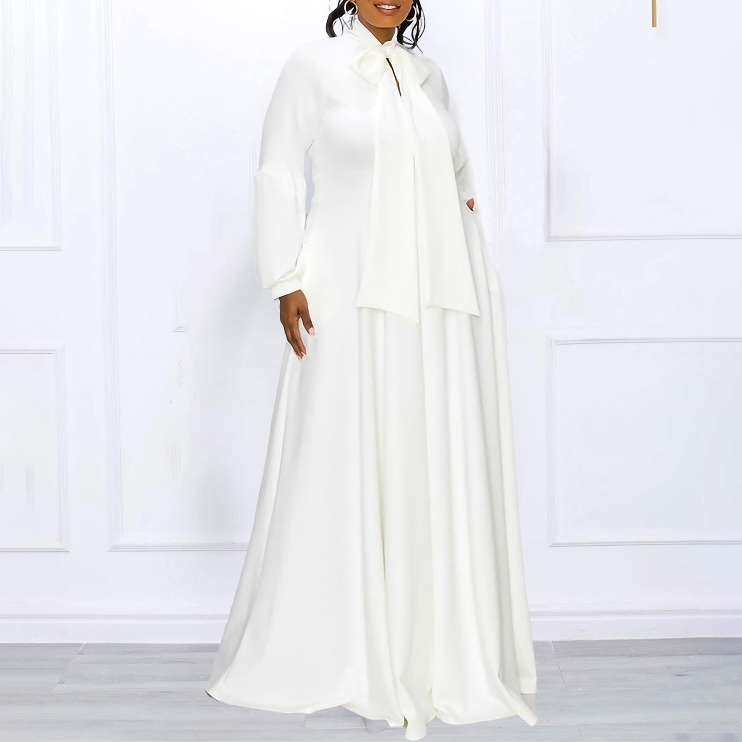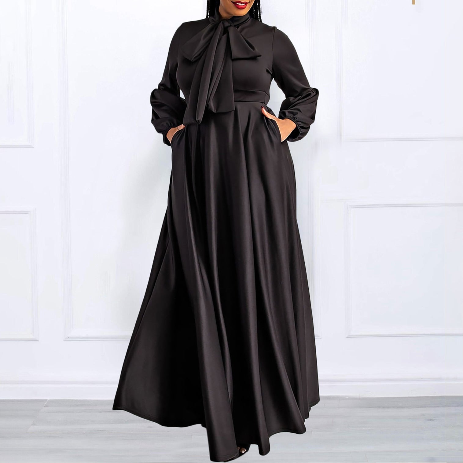 Autumn Winter Solid Color plus Size Lace up Puff Sleeve High Waist Big Swing Maxi Dress African Dress