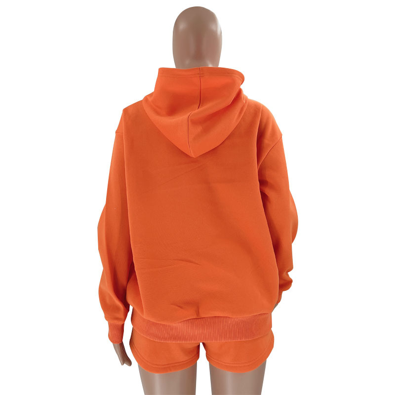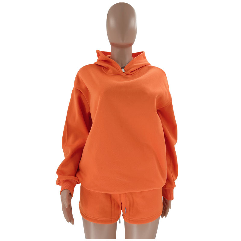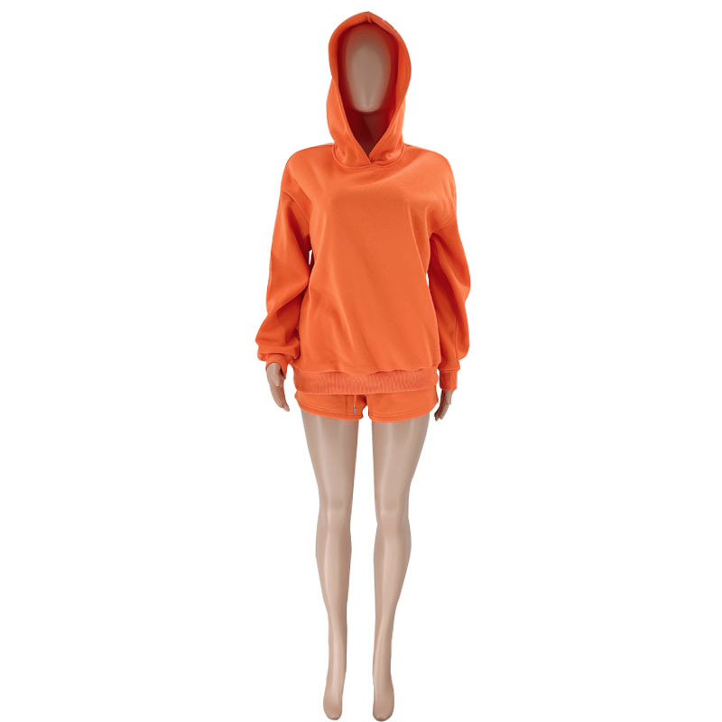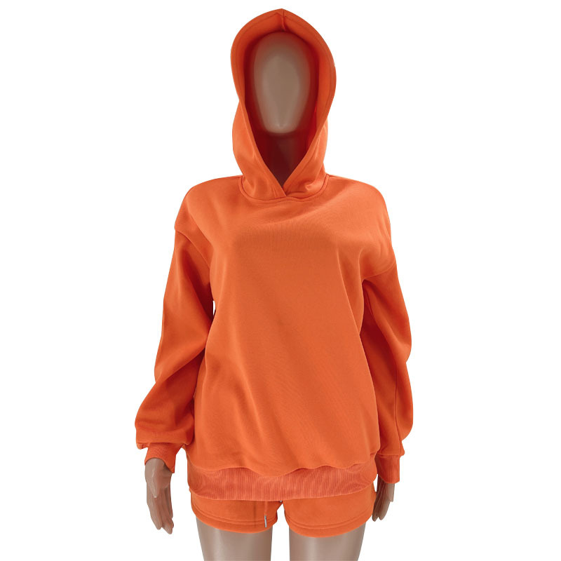 Autumn Winter Solid Color Pullover Hooded Long Sleeves Sweaters Women Clothing Casual Shorts Suit
