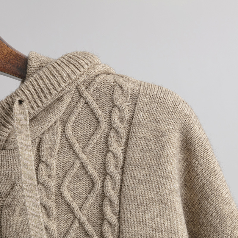 Autumn Winter Suit Hoodie with Drawstrings Loose Sweater Draping Wide Leg Trousers Twist Two Piece Suit