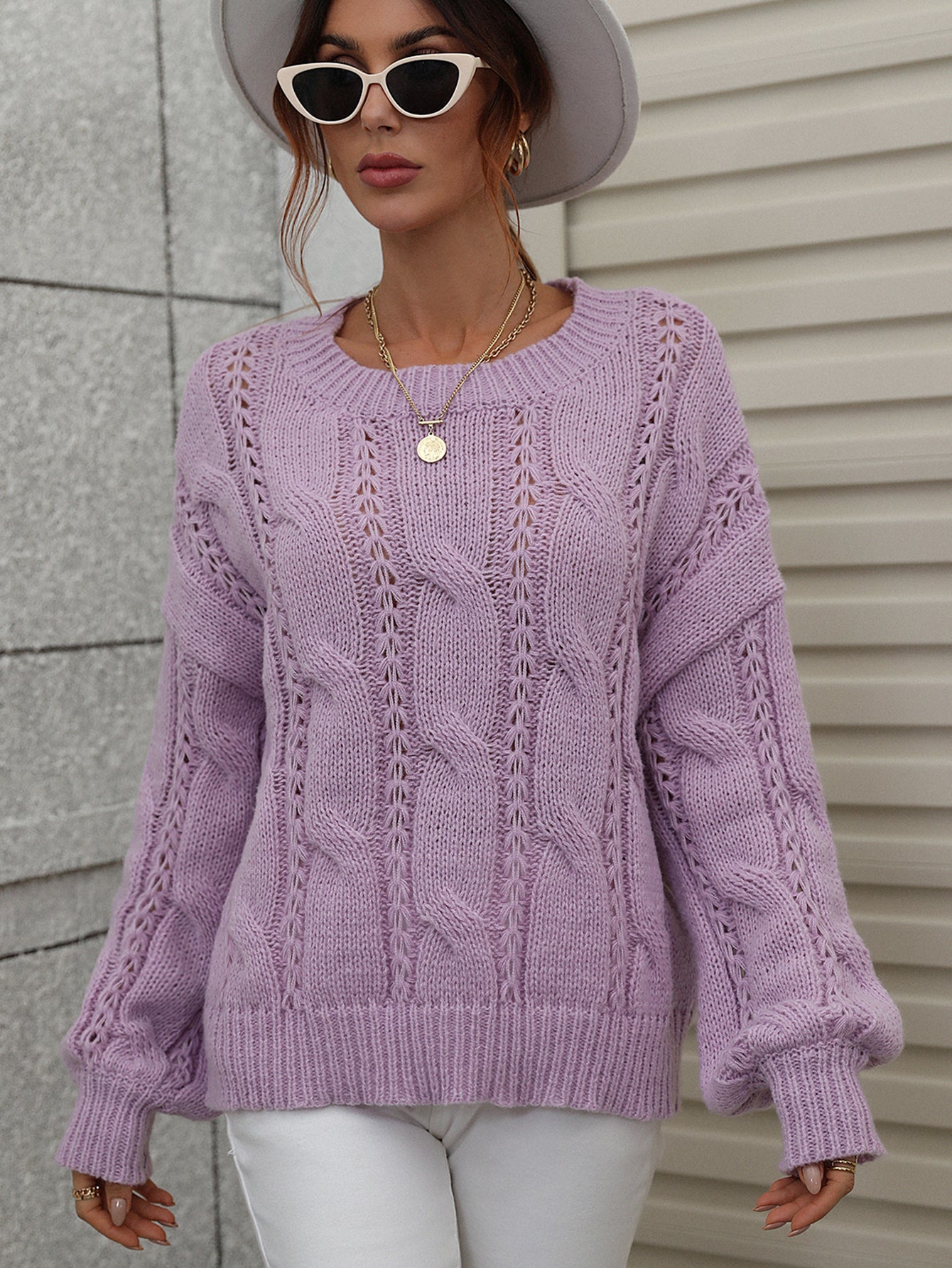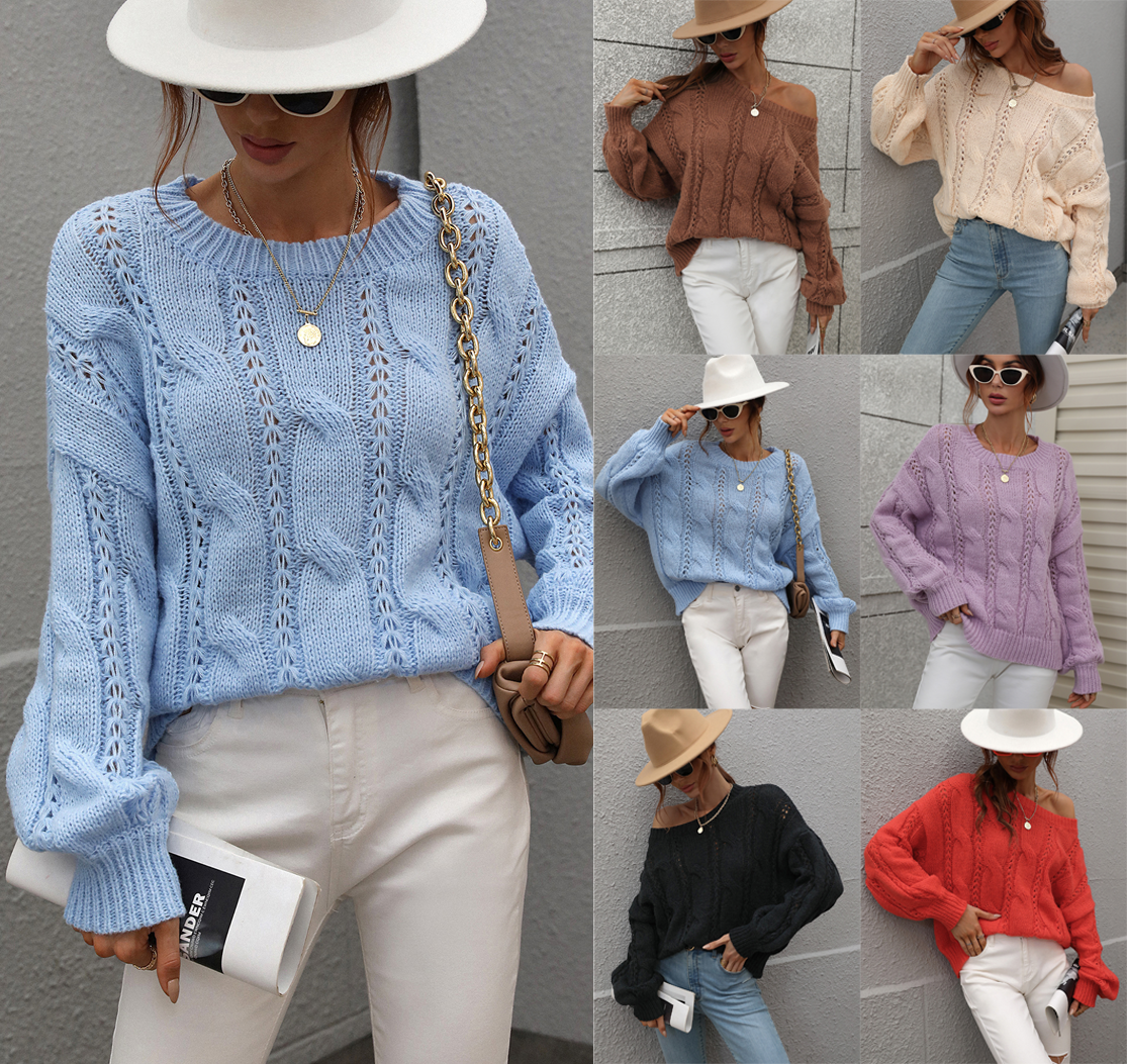 Autumn Winter Sweaters Twisted String Solid Color Loose-Fitting Plus Size round Neck Knitted Sweater for Women