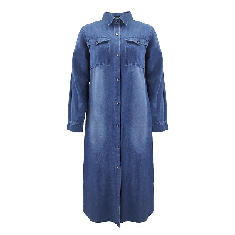 Autumn Winter Thickening Collared Denim Shirt Women Long Sleeve Dress Loose Casual High Quality Artistic Vintage Dress