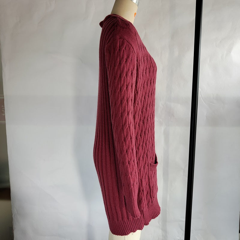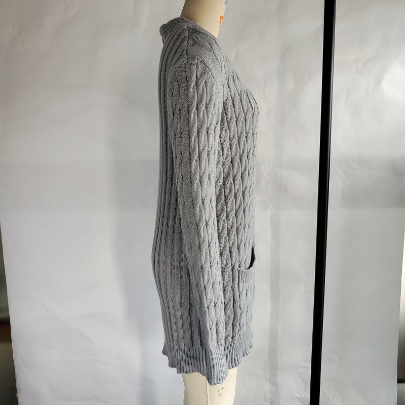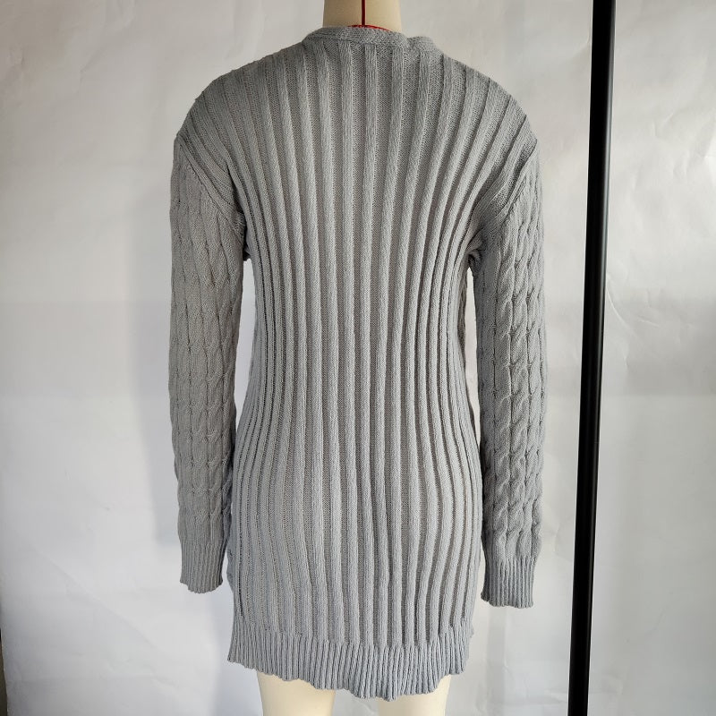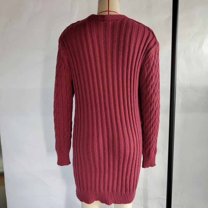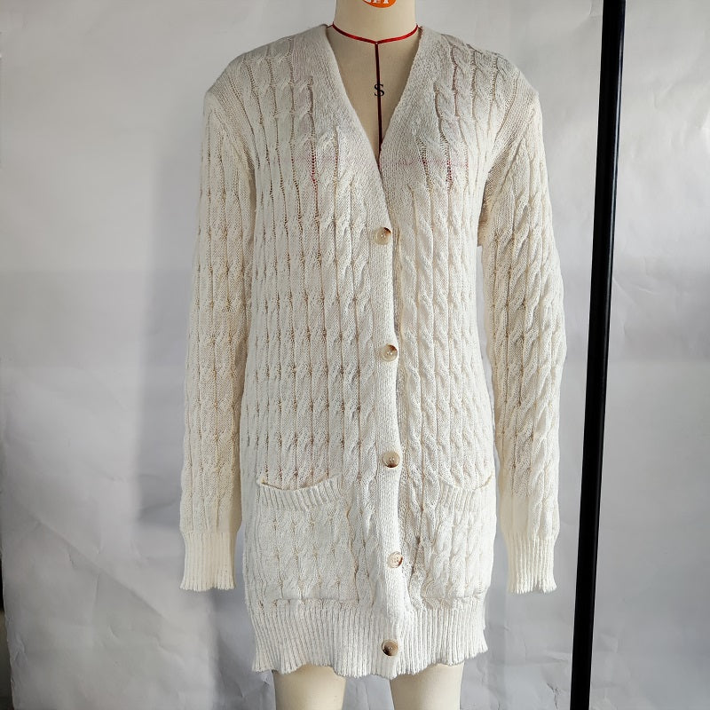 Autumn Winter Women Clothing Casual Cardigan Coat Solid Color Twist Button Cardigan Sweater Women