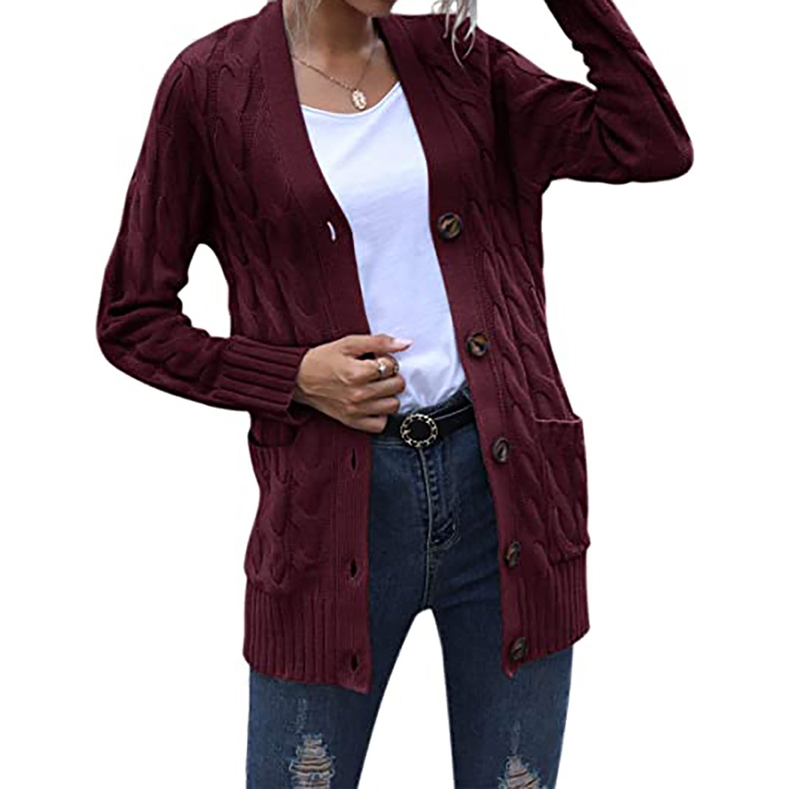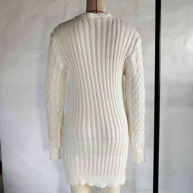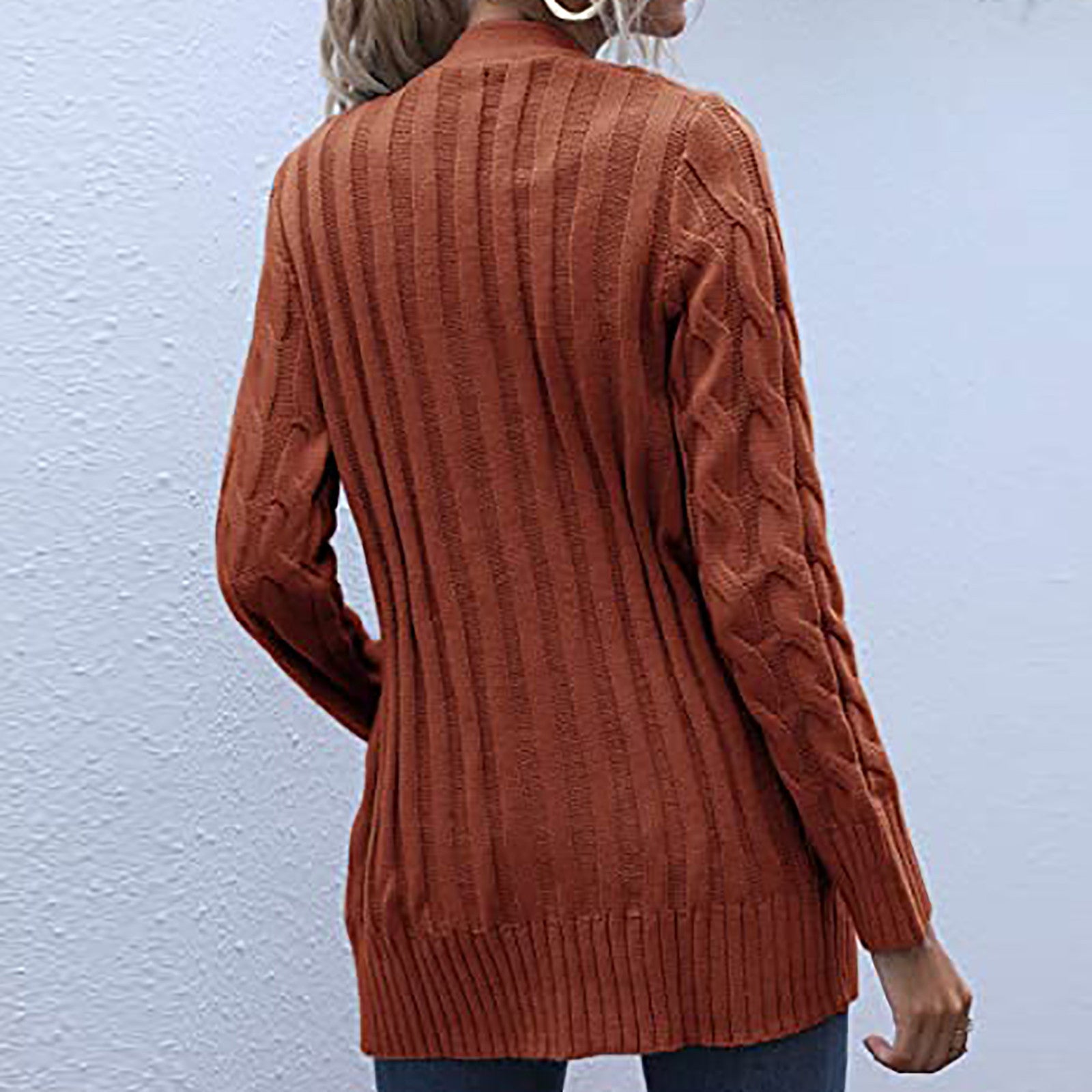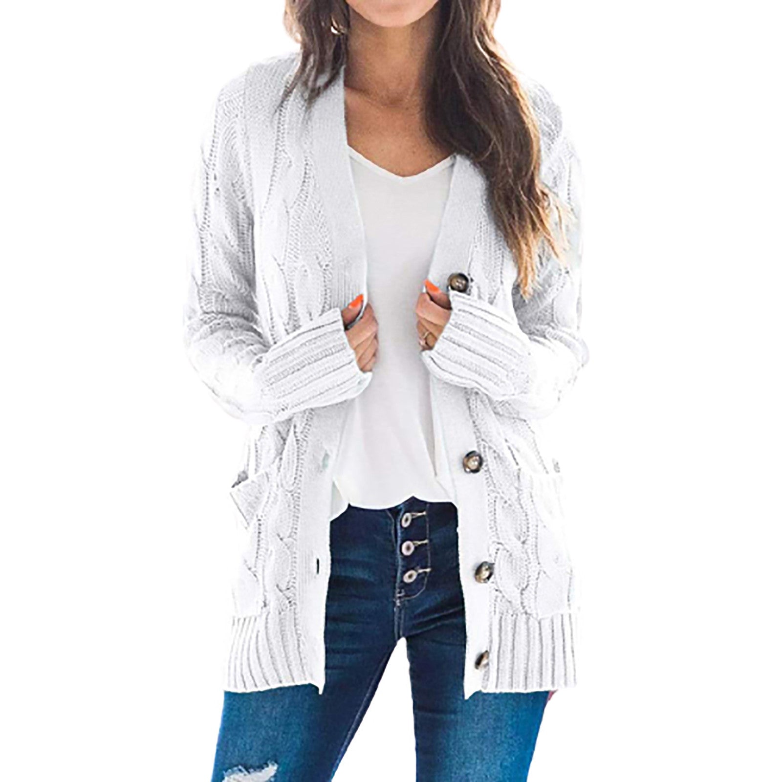 Autumn Winter Women Clothing Casual Cardigan Coat Solid Color Twist Button Cardigan Sweater Women