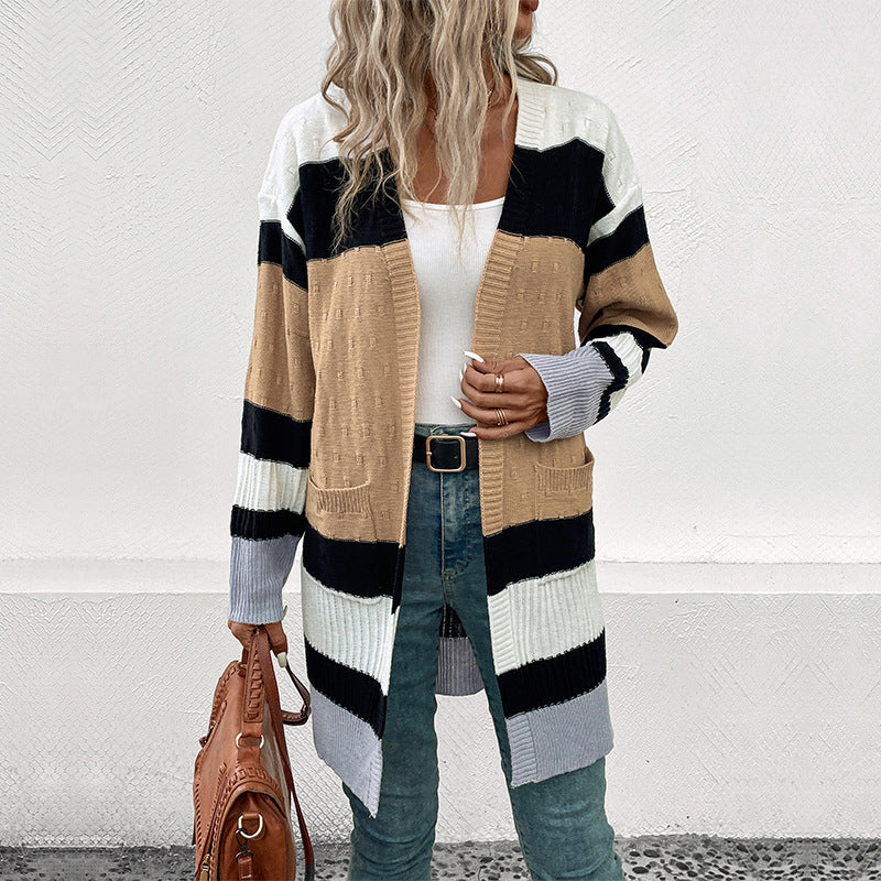 Autumn Winter Women Clothing Contrast Color Cardigan Sweater for Women