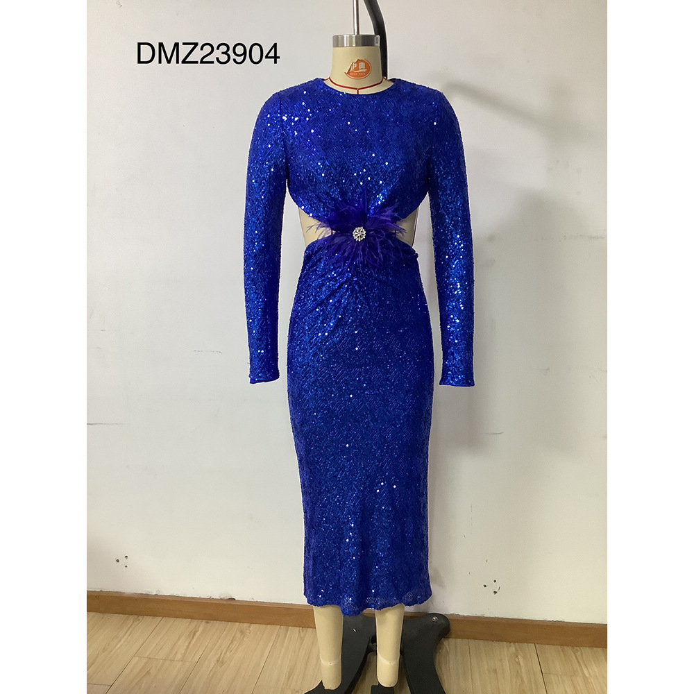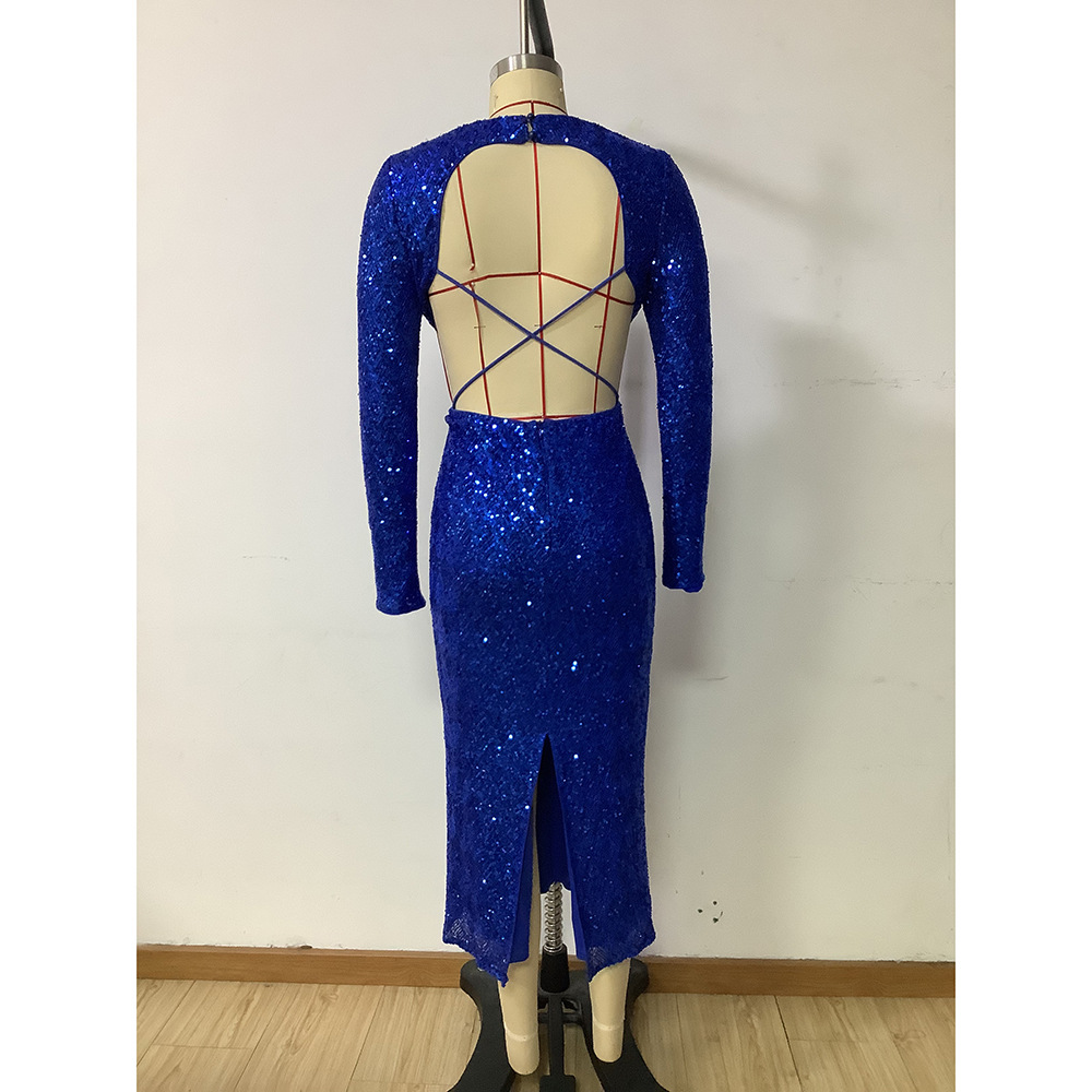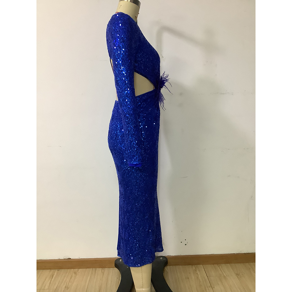 Autumn Winter Women Clothing Dress Hollow Out Cutout out Stitching Sequ Maxi Dress