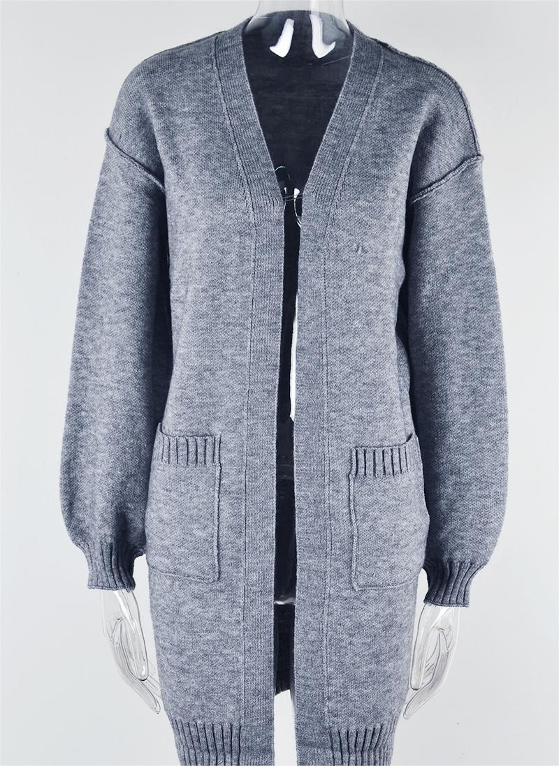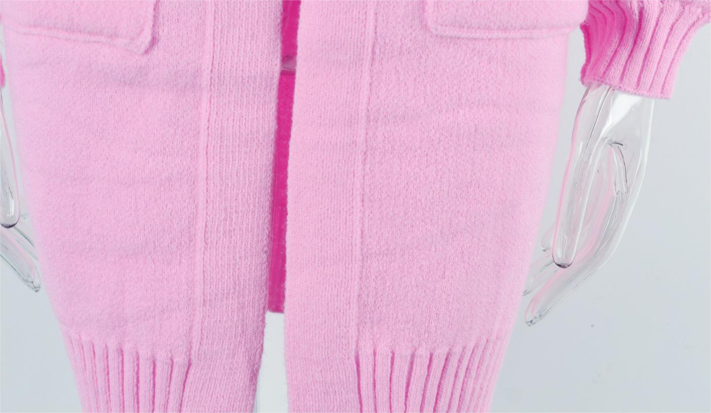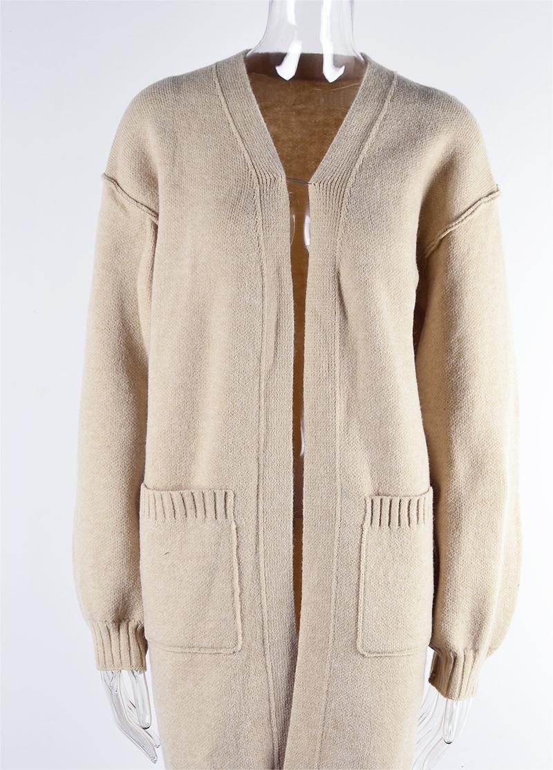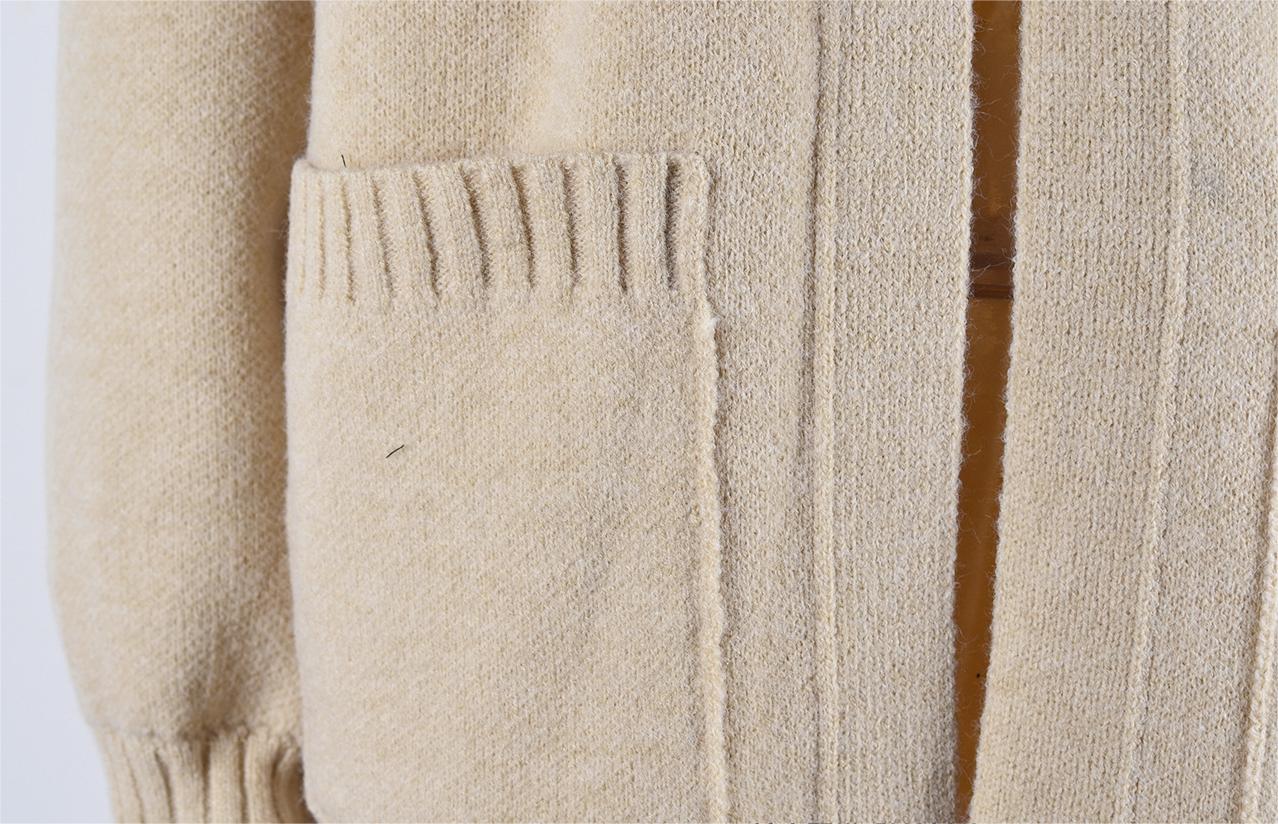 Autumn Winter Women Clothing Knitted Solid Color Pocket Mid Length Sweater Coat