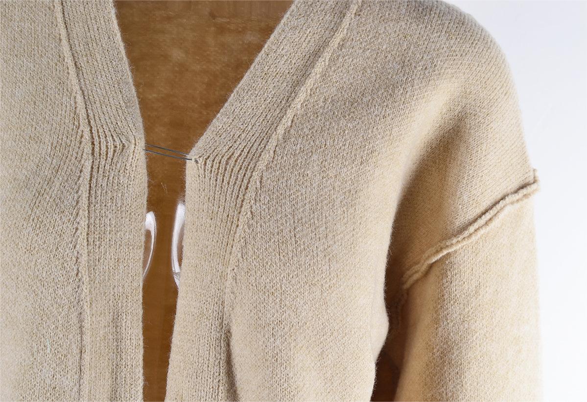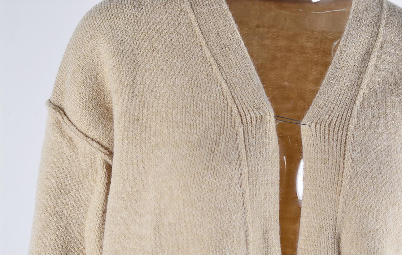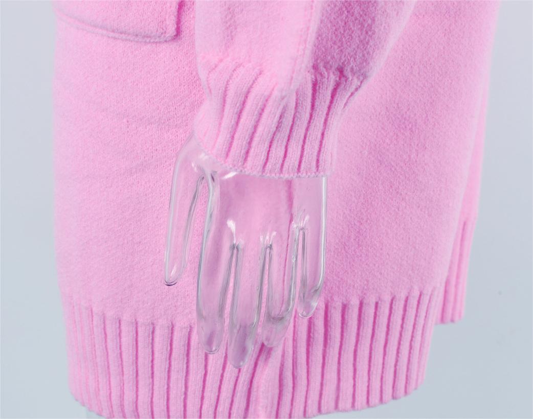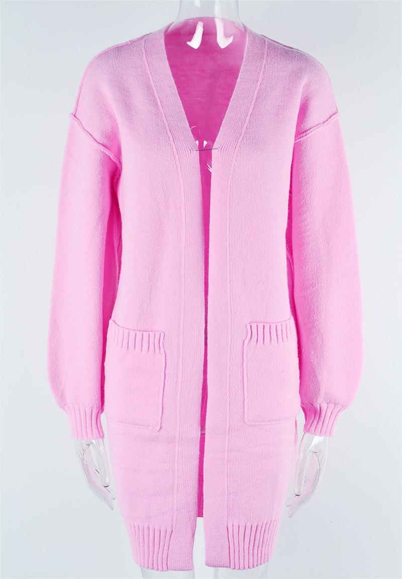 Autumn Winter Women Clothing Knitted Solid Color Pocket Mid Length Sweater Coat