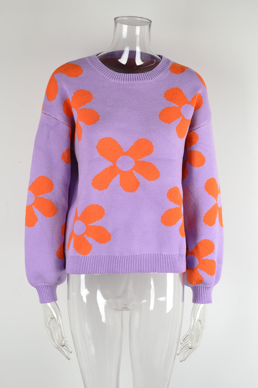 Autumn Winter Women Printed Sweater Pullover Floral Plus Size Sweater Women