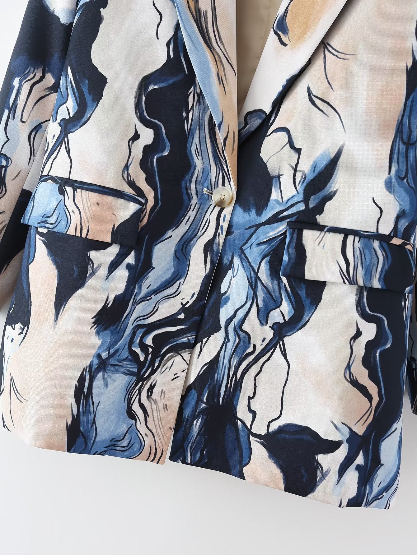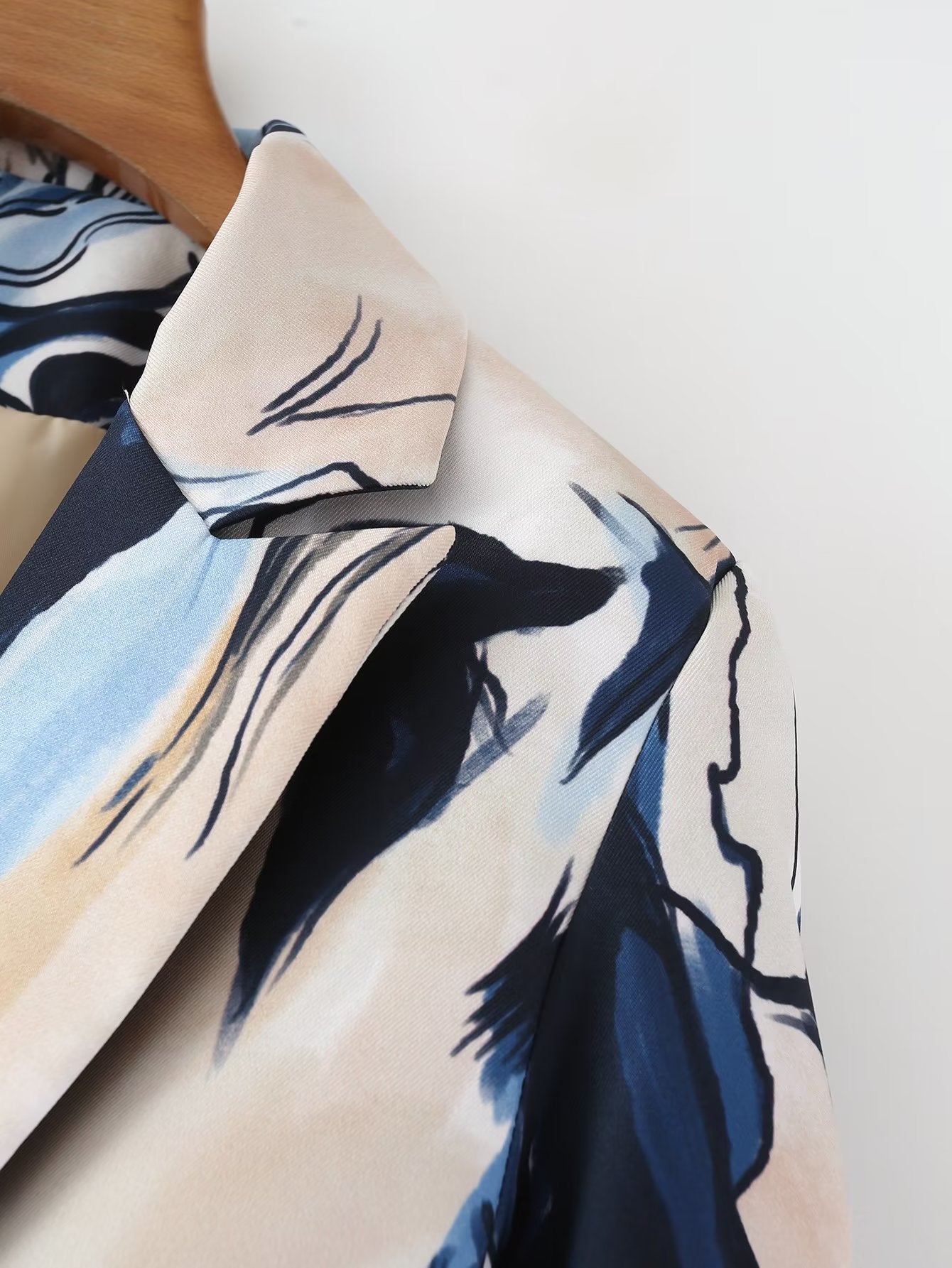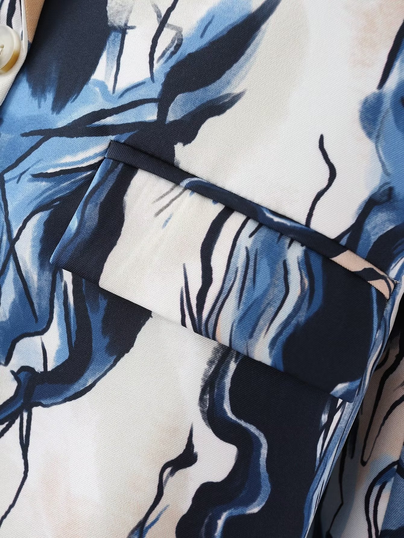 Autumn Women Clothing Colorful Printing Two Buttons Slim Fit Blazer Suit