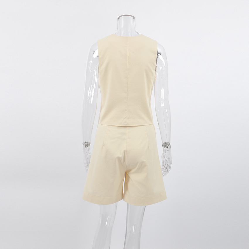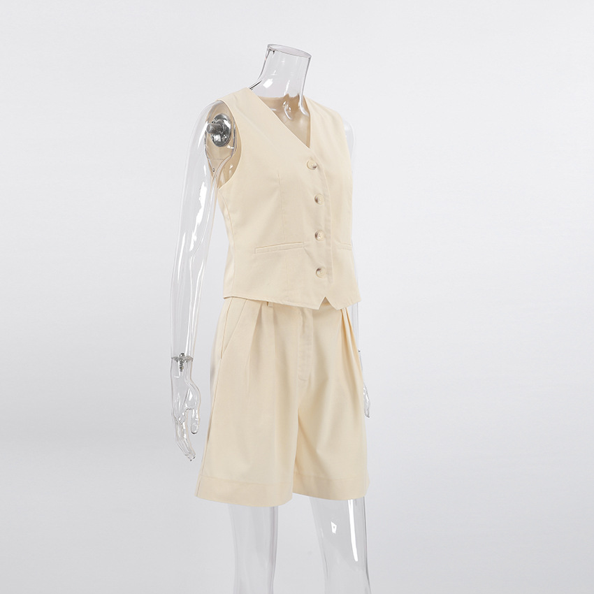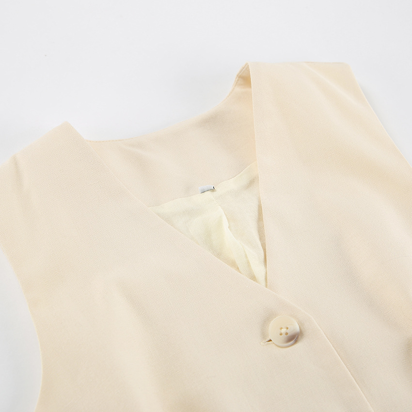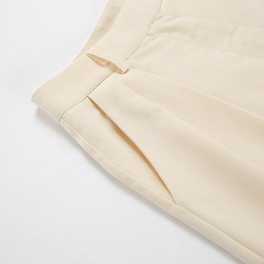 Beige Cotton Linen Sleeveless Vest Waistcoat Suit Summer Loose Breathable Women Clothing Two Piece Suit