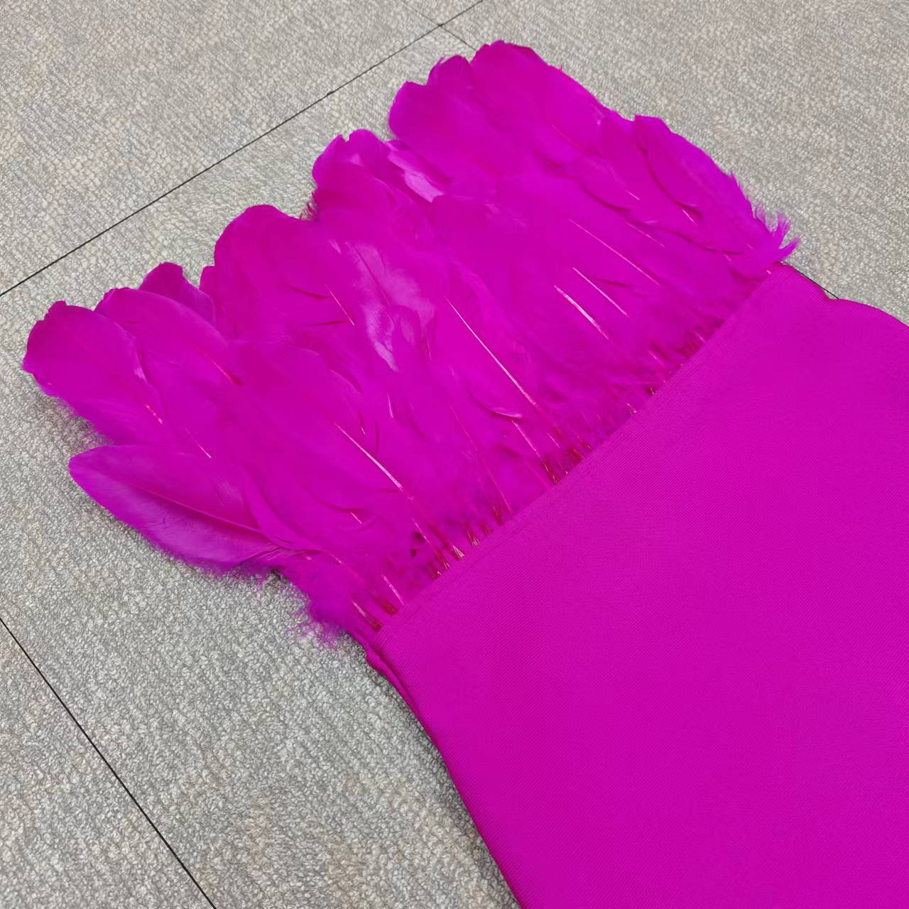 Brown Rose Red Tube Top Feather Backless Slim Fit Medium Length Bandage One Piece Dress