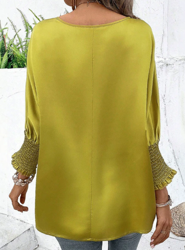 Casual Loose Women T shirt Smocking Batwing Sleeve Solid Color round Neck Top Spring Summer Women