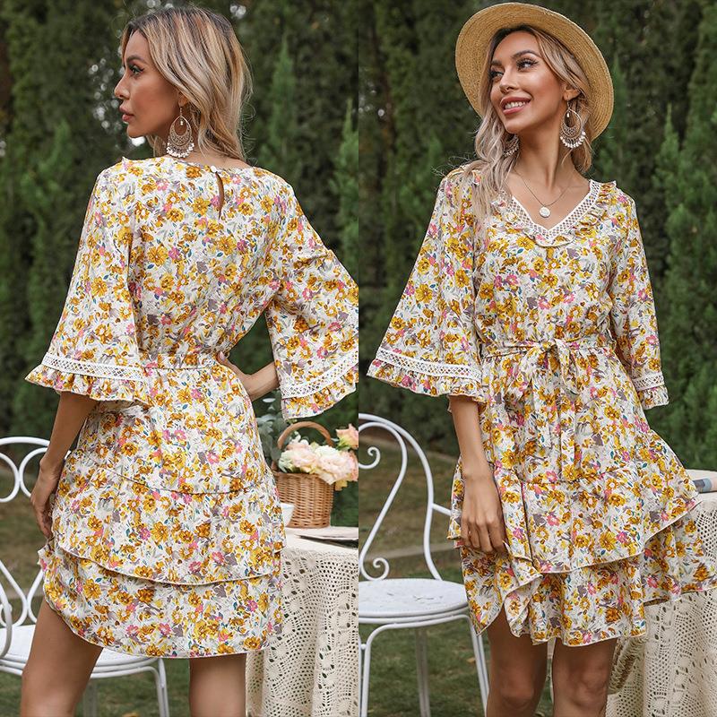 Spring Summer Linen Positioning Printing Dress Loose Vacation Women Clothing Dress
