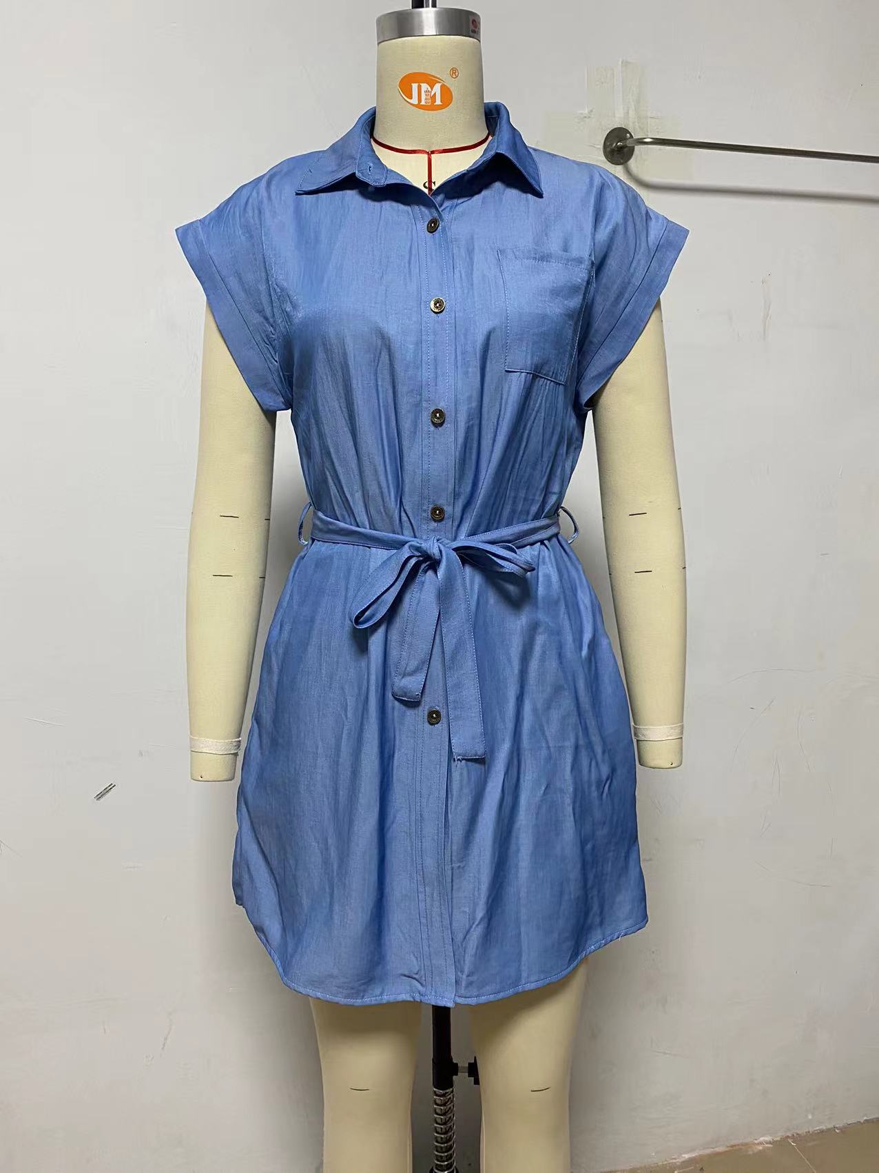 Casual Solid Color Waist Tight Women Denim Long Shirt
