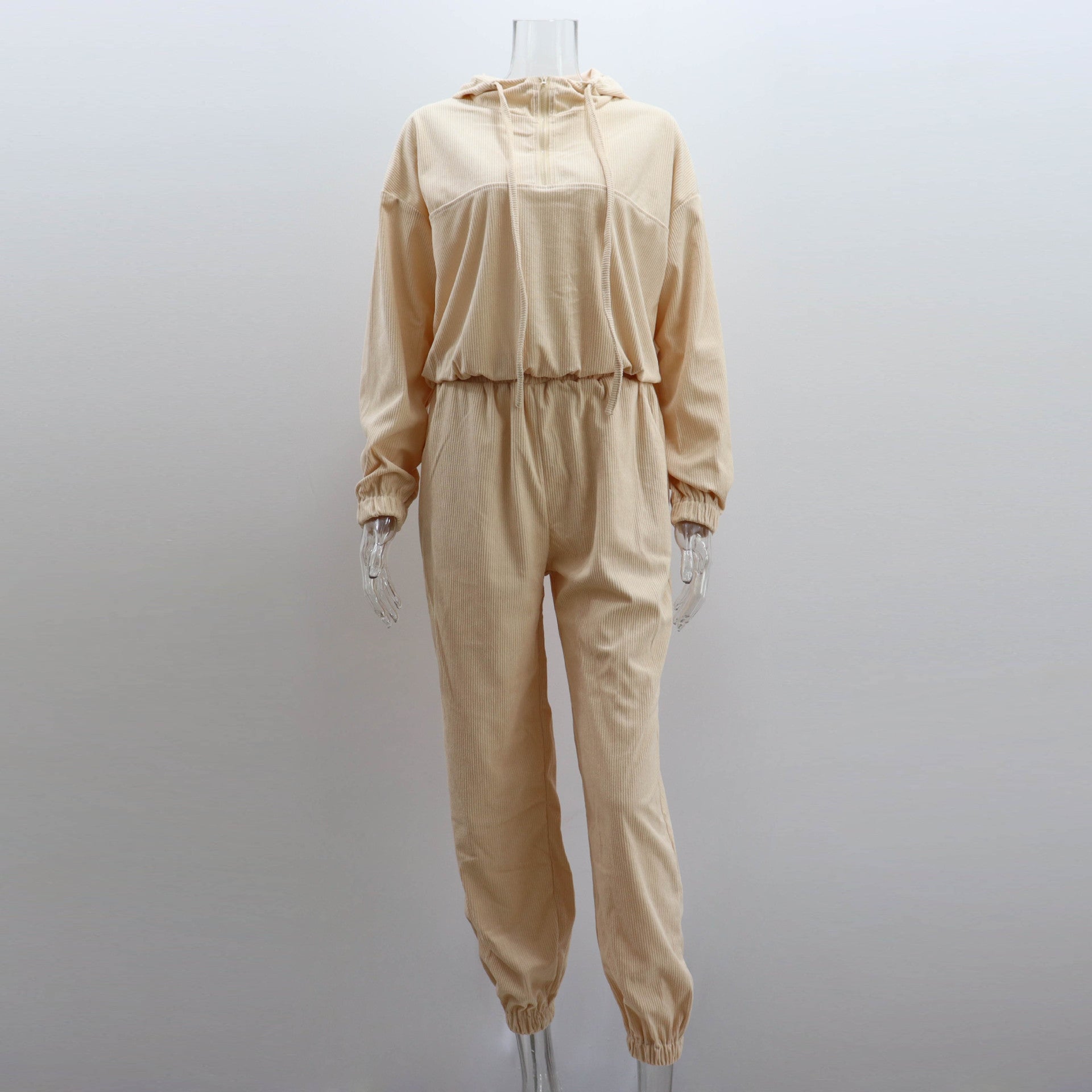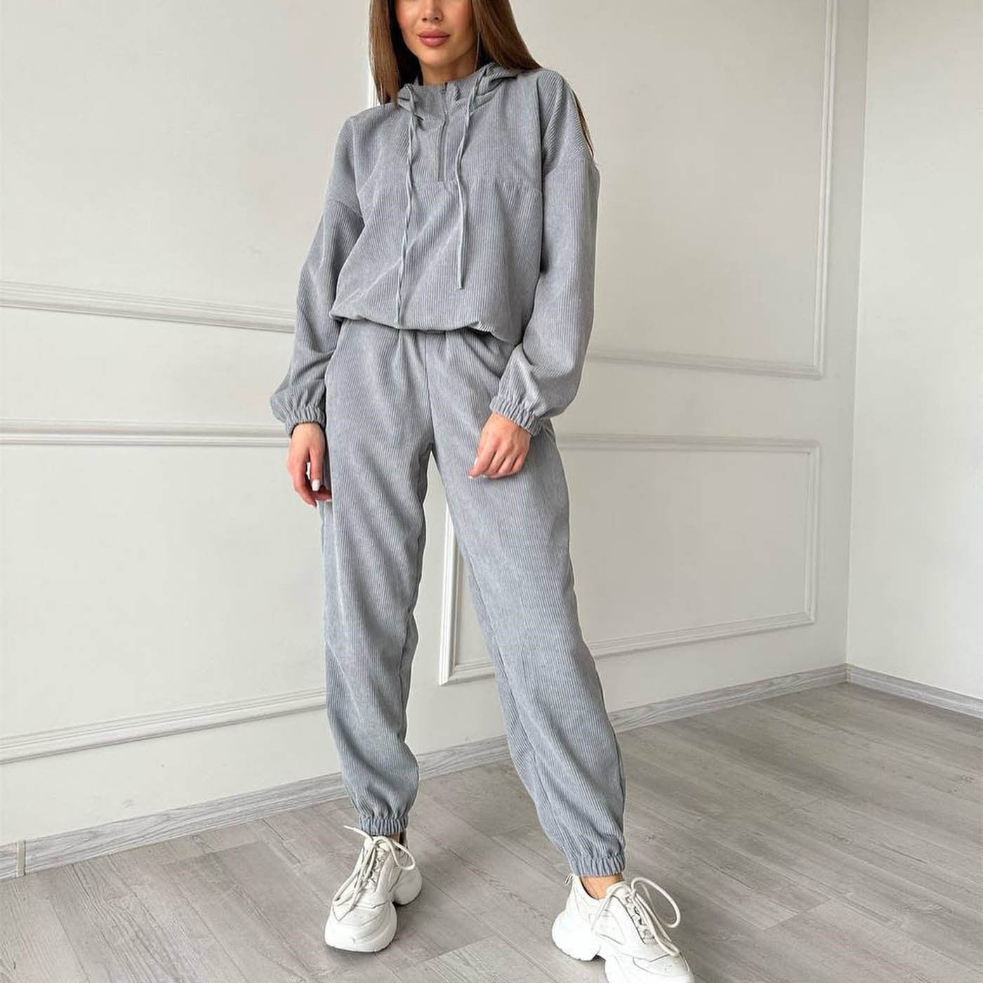 Corduroy Suit Women Sports Casual Autumn Winter Zipper Hooded Sweatshirt Sweatpants Two Piece Set Women
