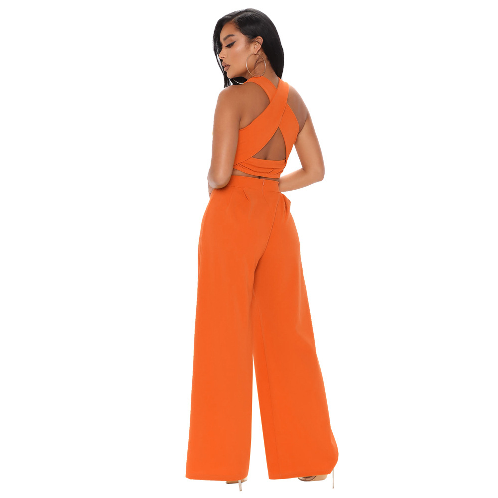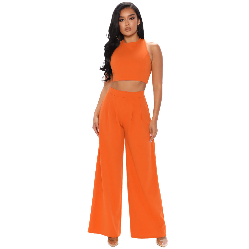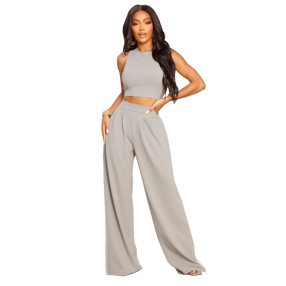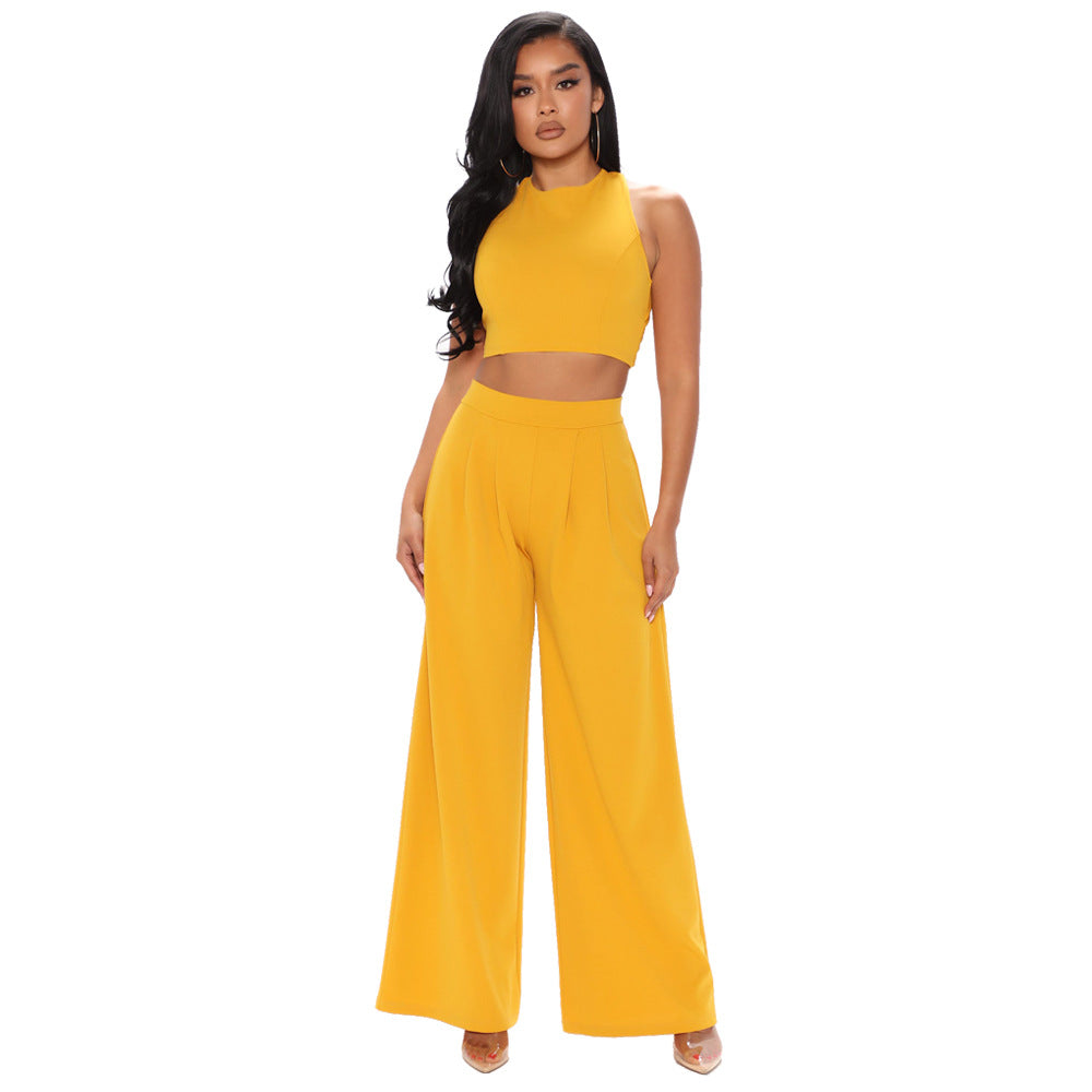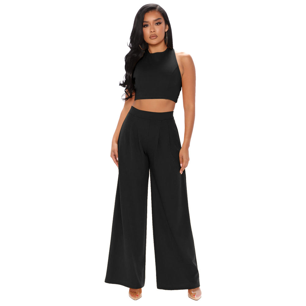 Cropped Tank Top Straight Flare Pants Casual Sports Two-Piece Set