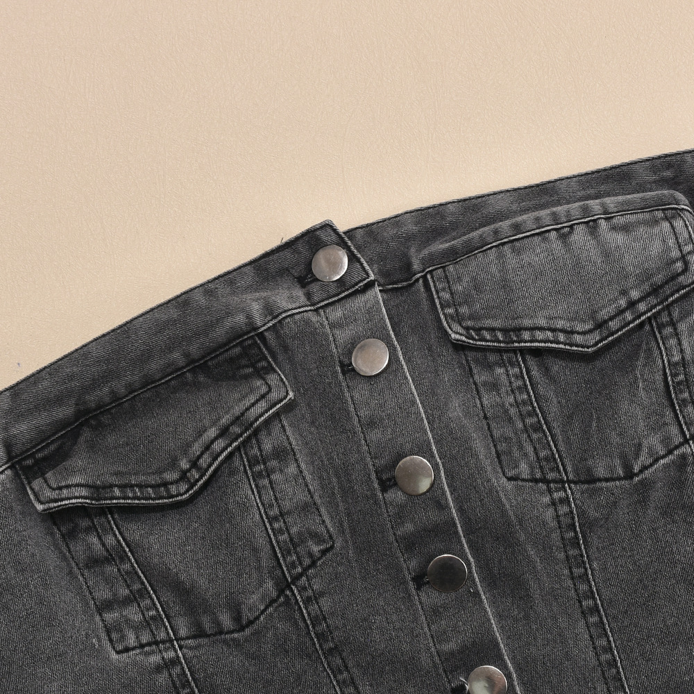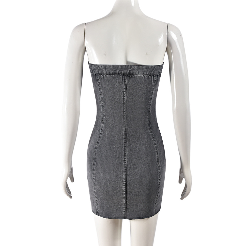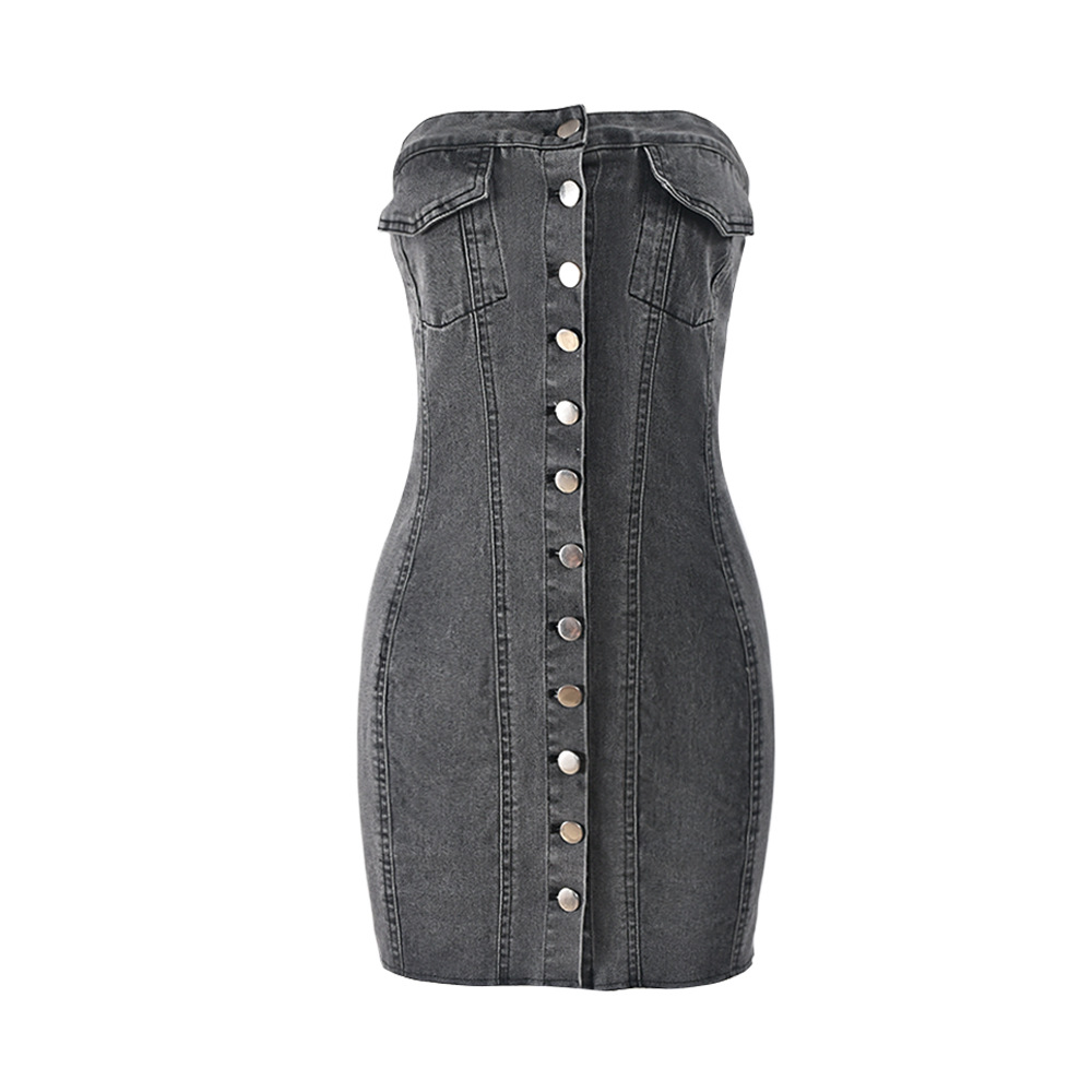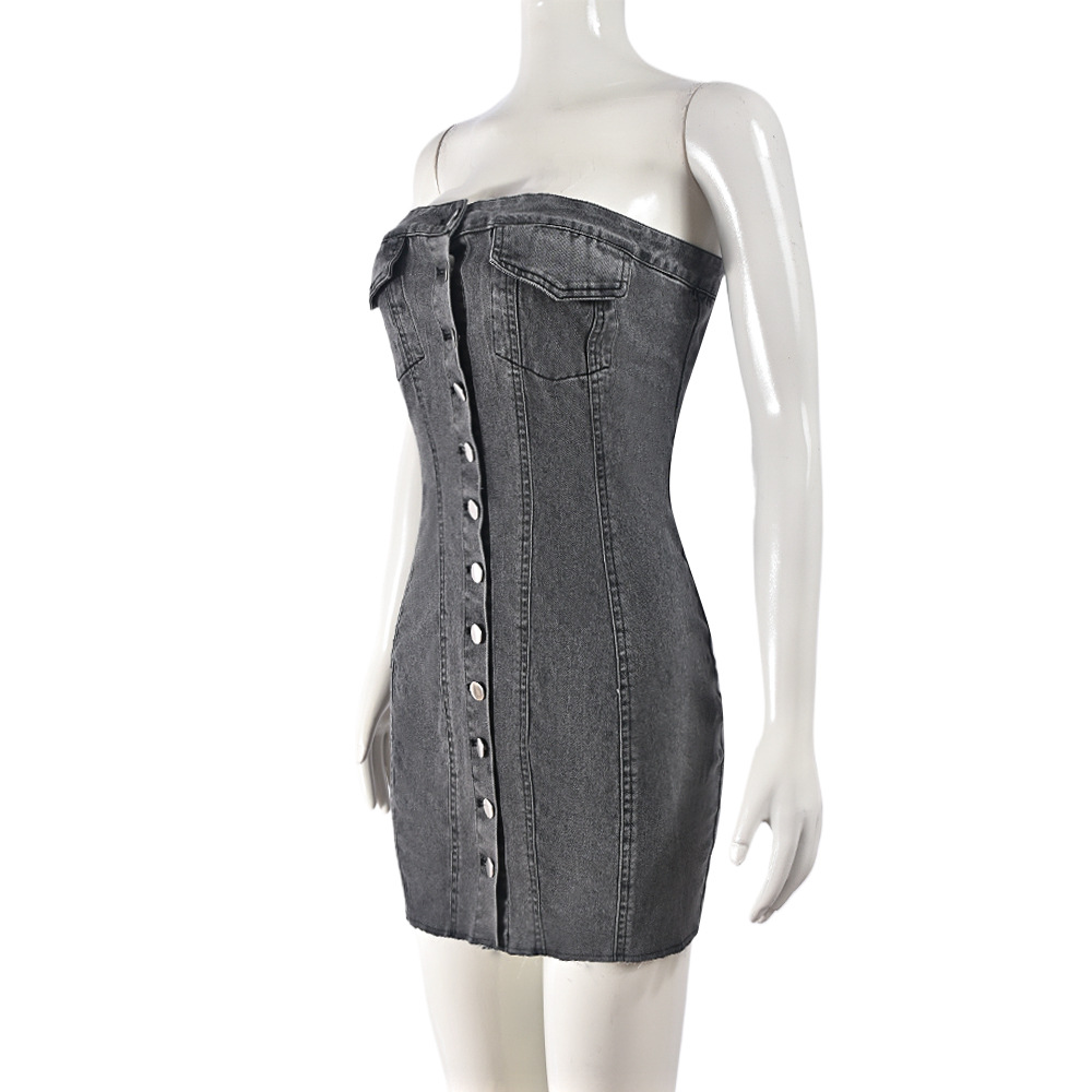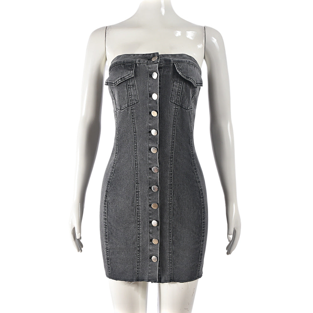 Denim Spring Summer Sexy Cardigan Button Washing Chest Wrapped Dress