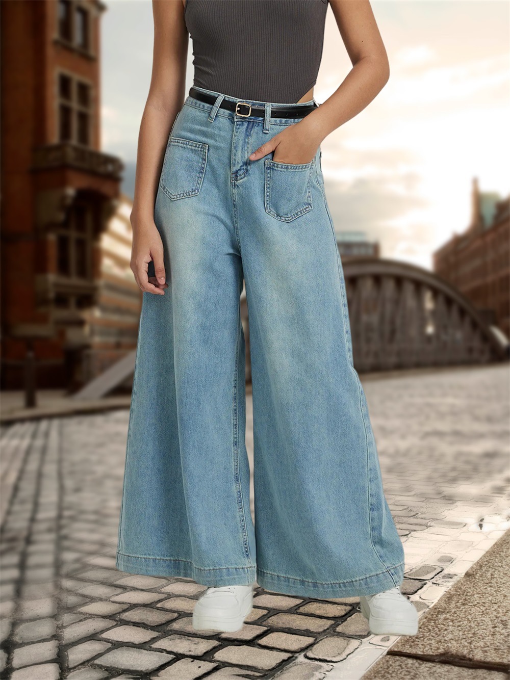 Denim Women Loose Drooping High Waist Wide Leg Jeans Women Jeans