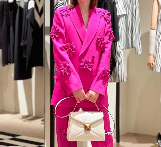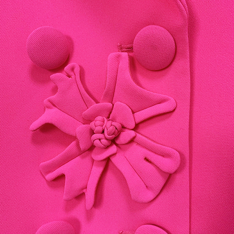 Double Breasted Heavy Industry Three-Dimensional Floral Decorative 3D Rose Blazer