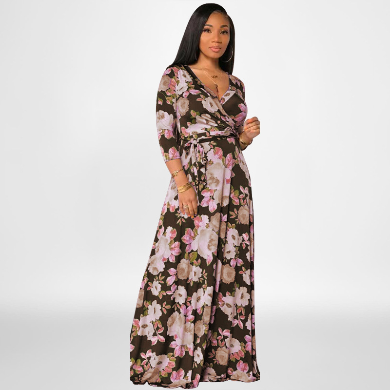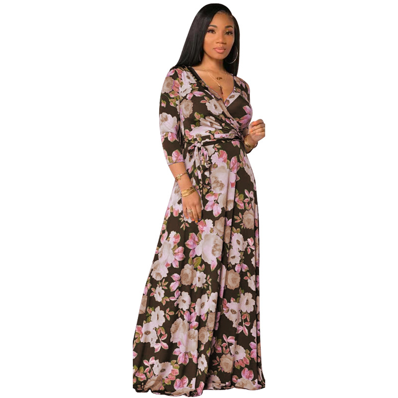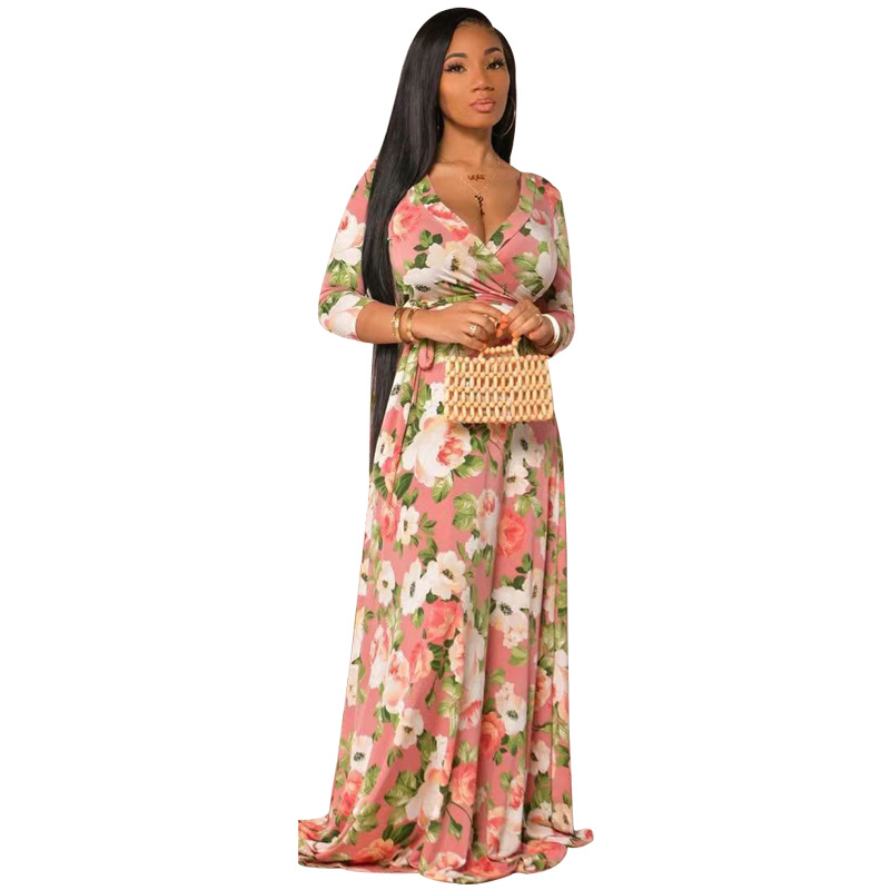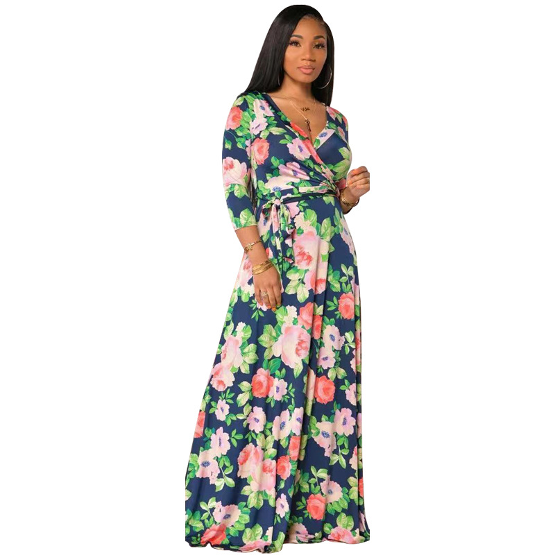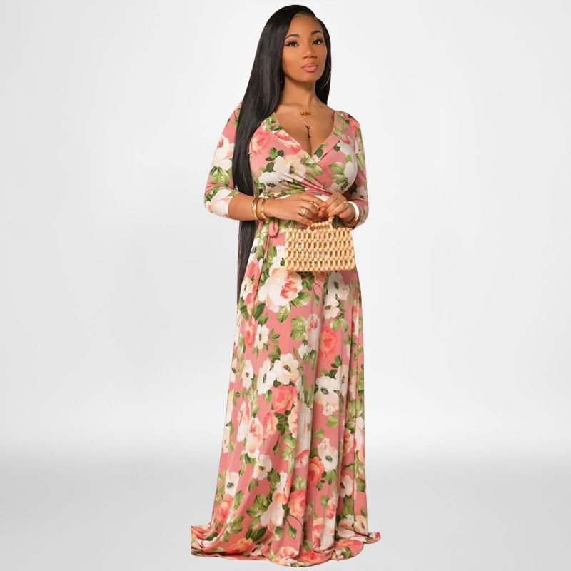 Dress Floral Print with Belt High Waist plus Size Women Dress
