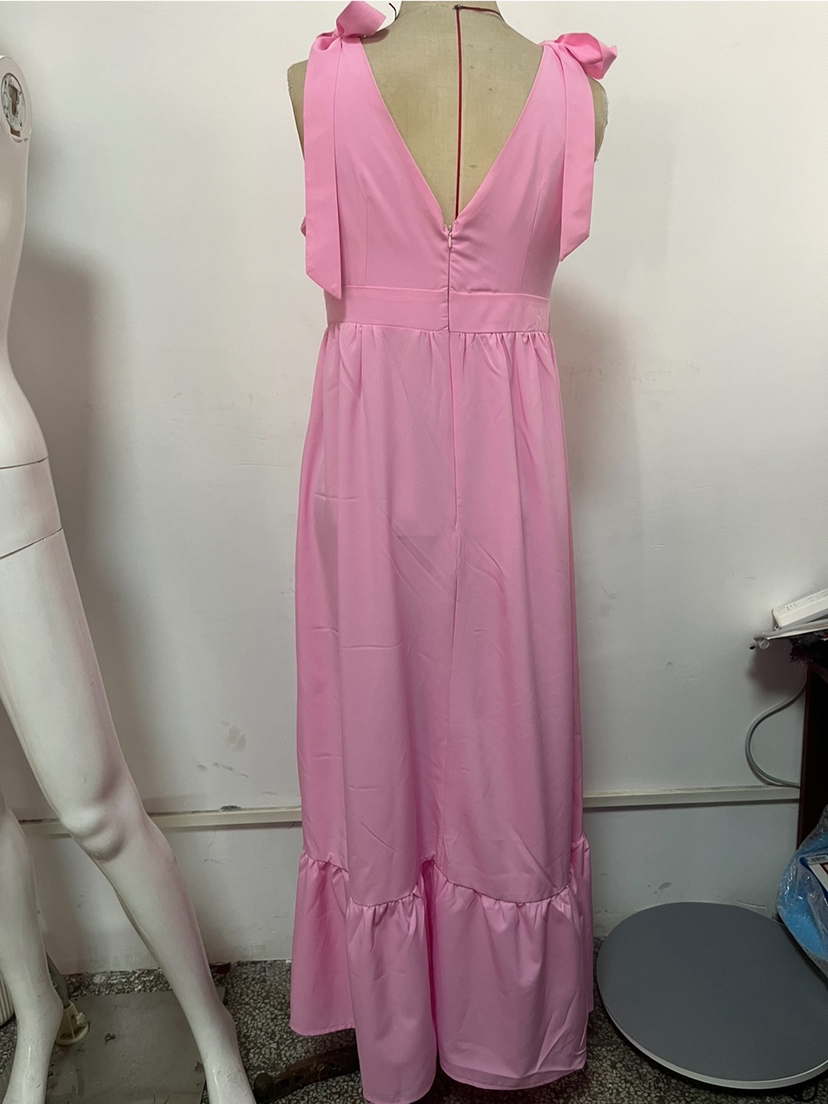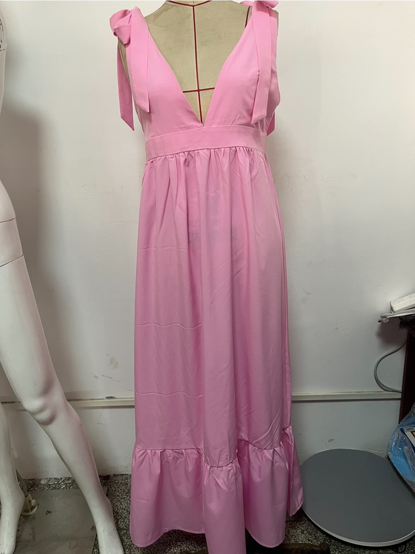 Dress Spring Summer Off Shoulder Sexy Backless Bow Sling Large Swing Dress