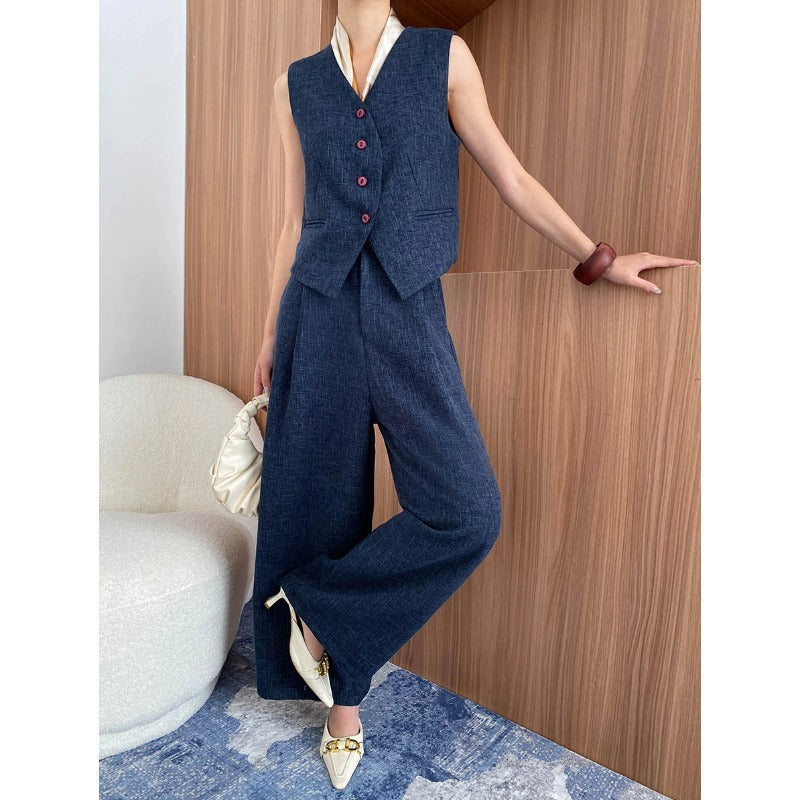 Early Spring High End Sense Old Money V neck Vest Wide Leg Pants Set