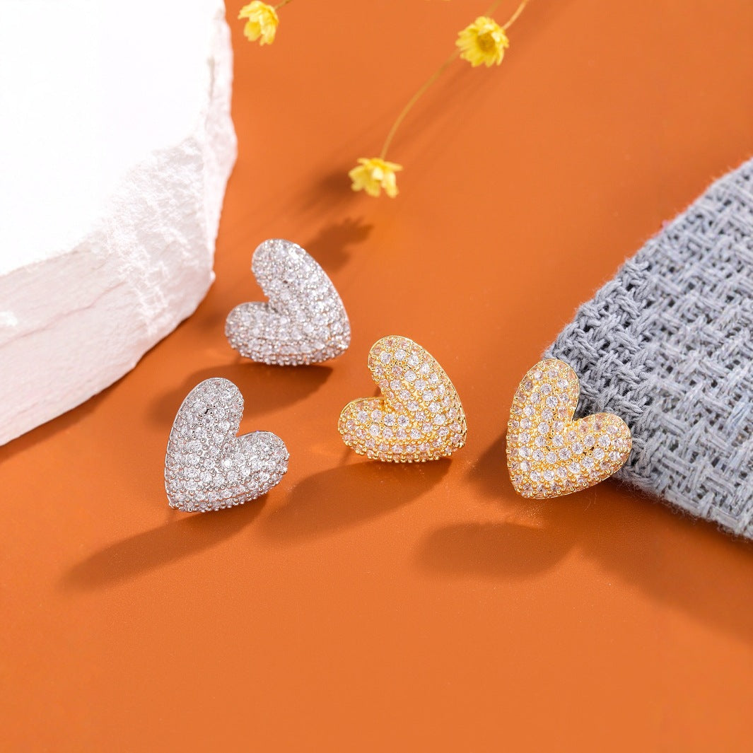 Elegance Simplicity Metal Diamond Love Heart Women Earrings Stud Earrings Suitable Daily Commuting Dating Gifts