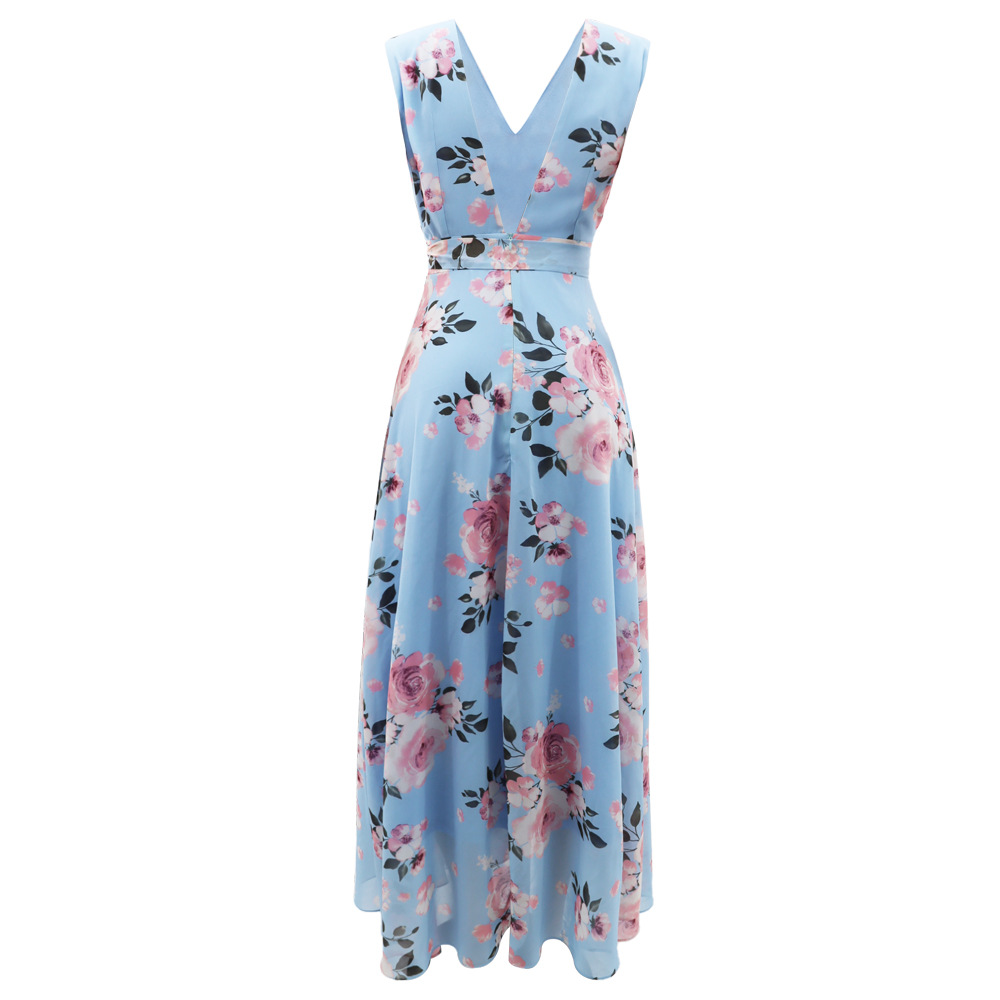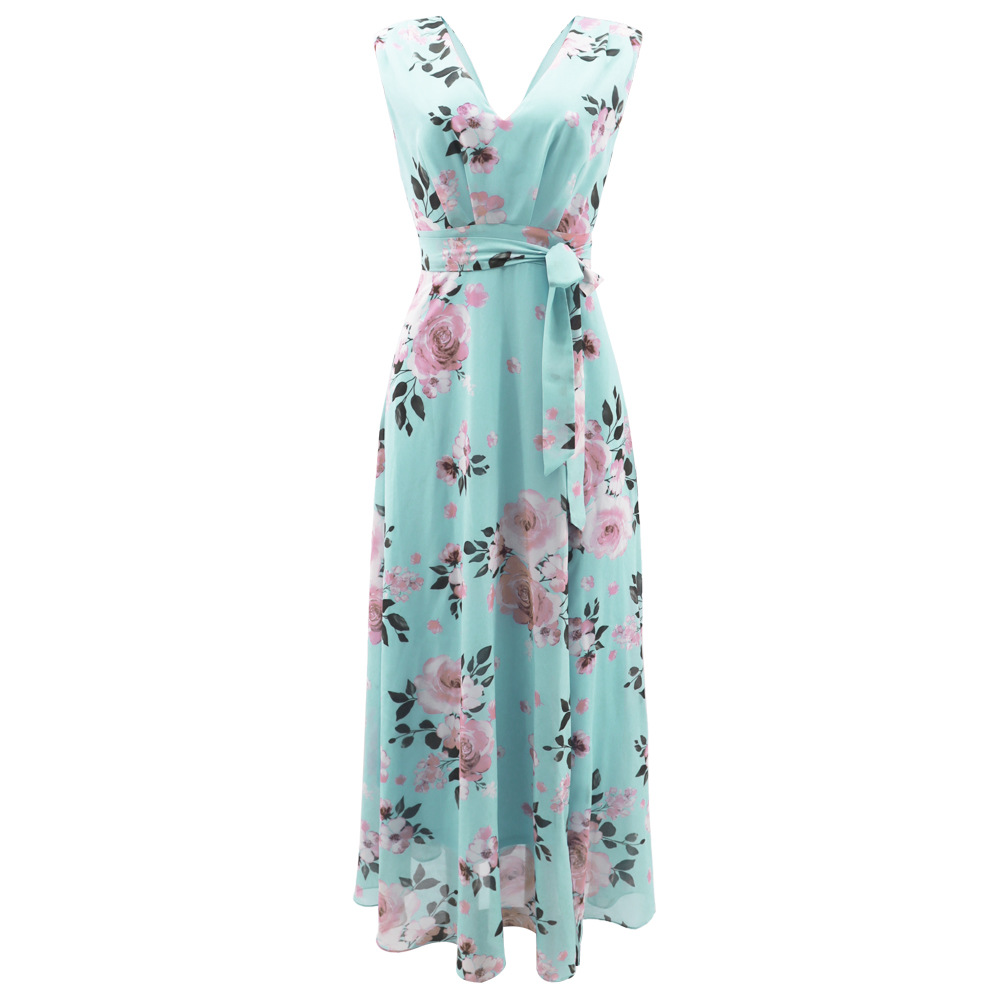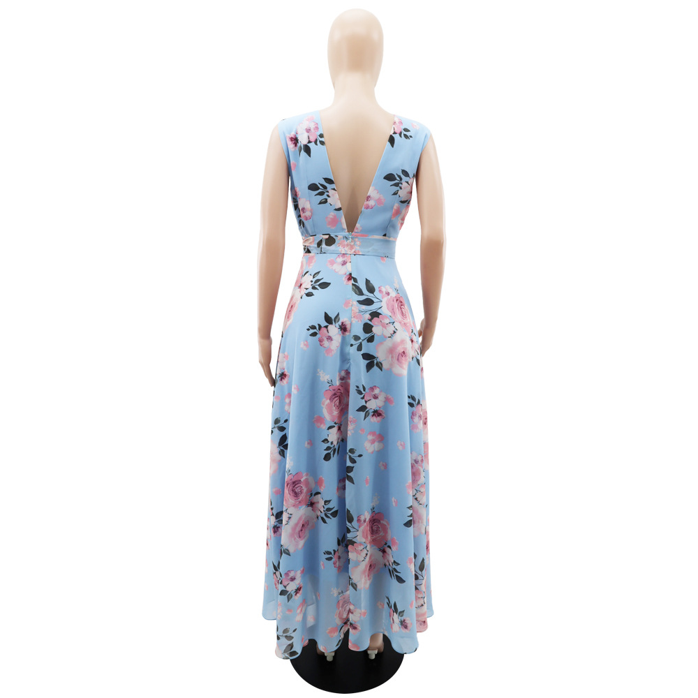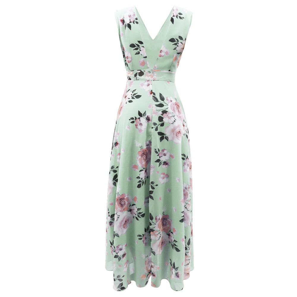 Elegant Chiffon Sleeveless Summer Floral Print Slit Tank Top Women Dress