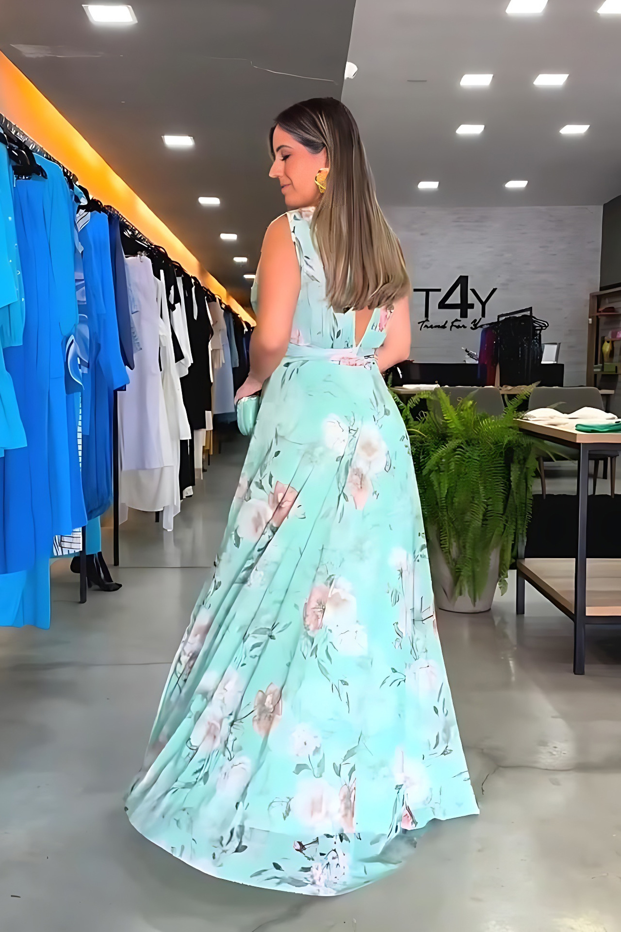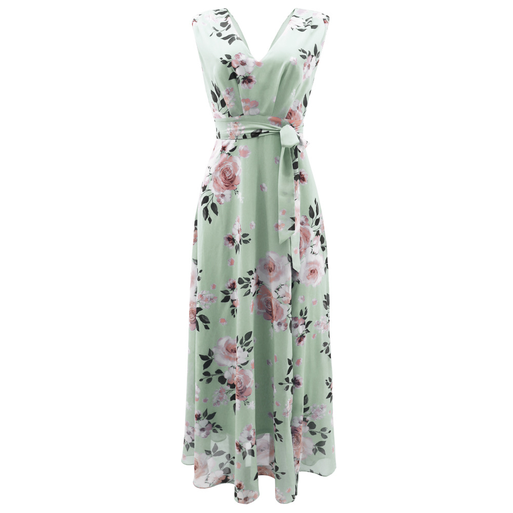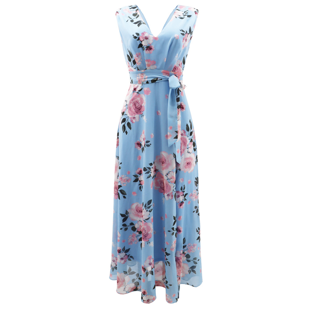 Elegant Chiffon Sleeveless Summer Floral Print Slit Tank Top Women Dress