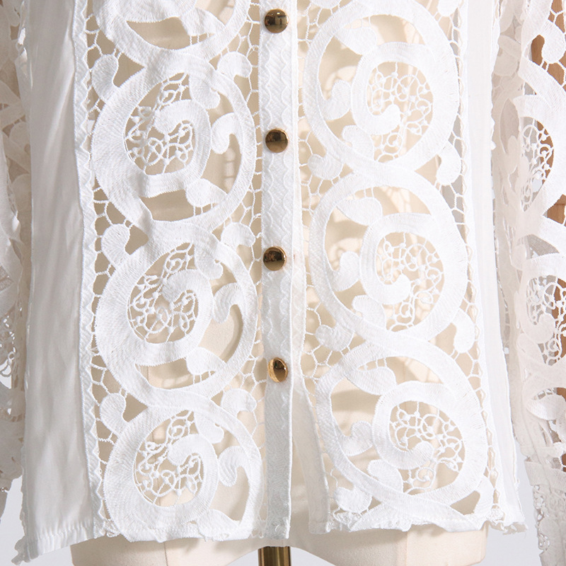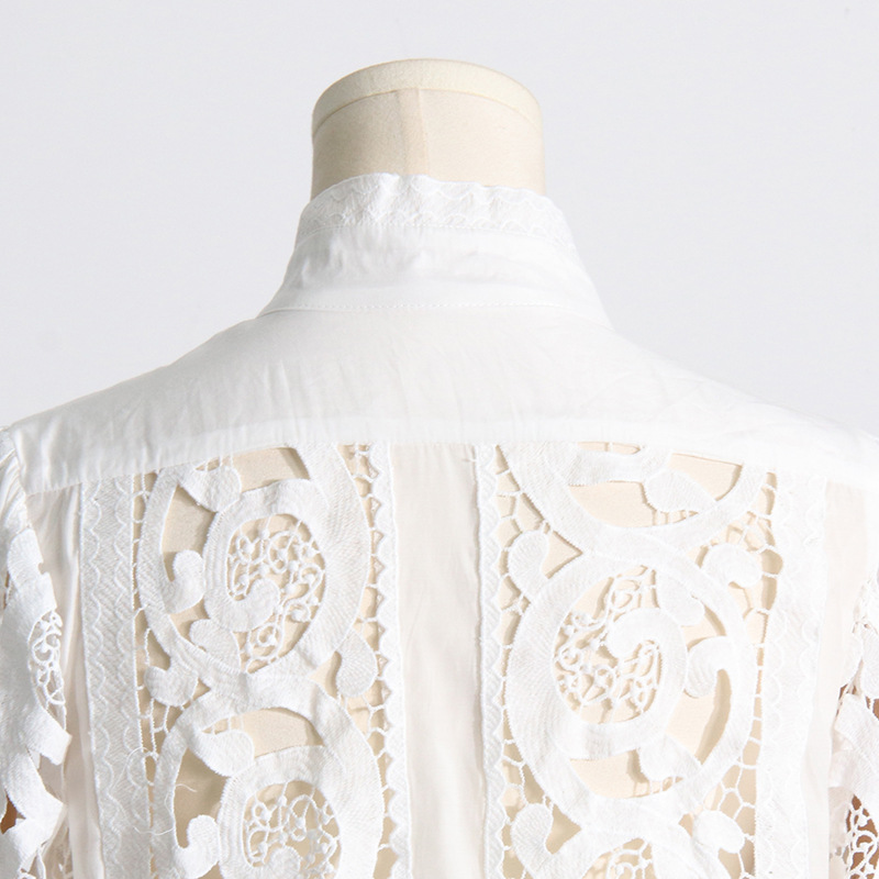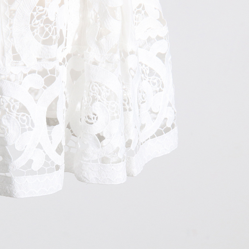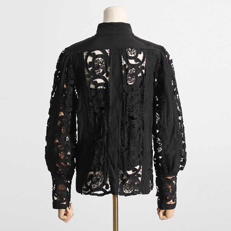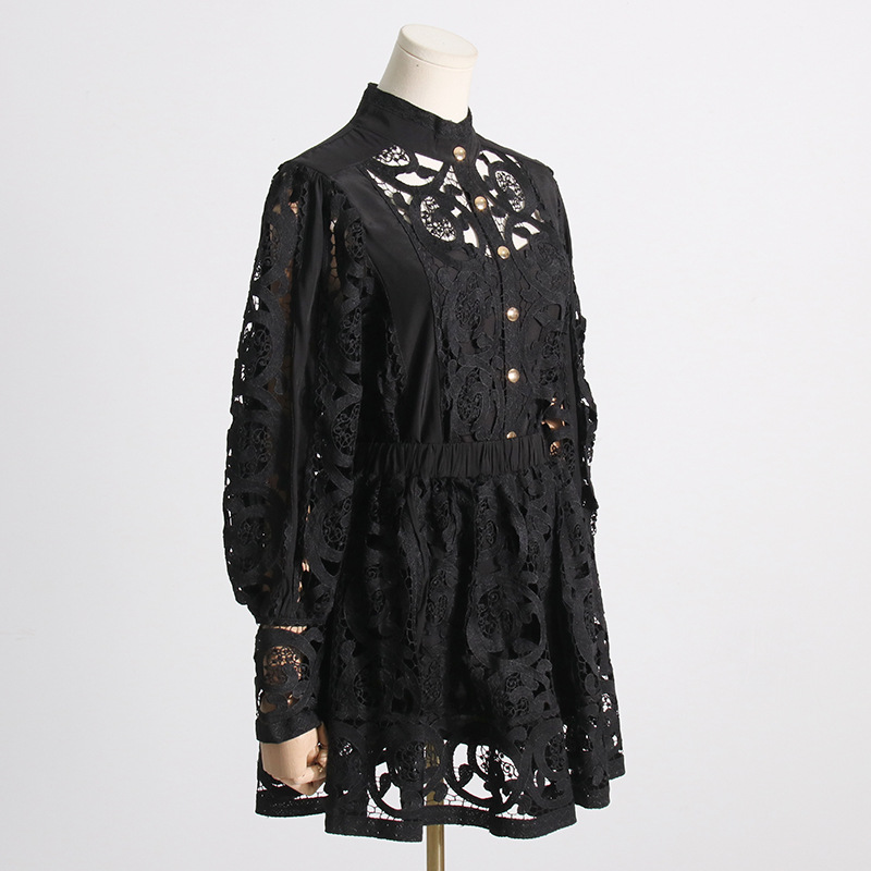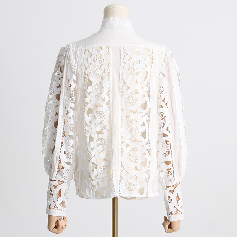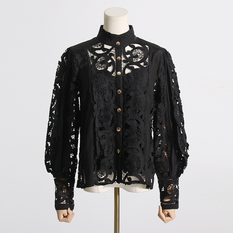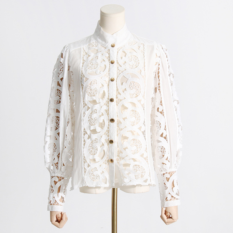 French Vintage Court Two Piece Set Stand Collar Hollow Out Cutout out Shirt High Waist Embroidered Skirt Sets