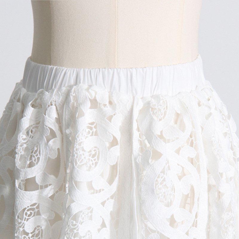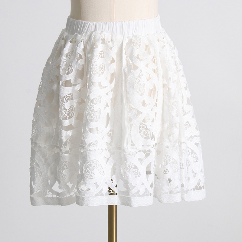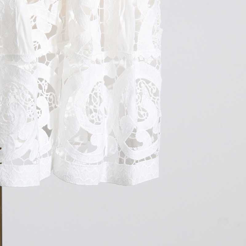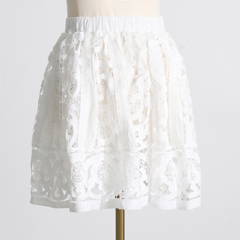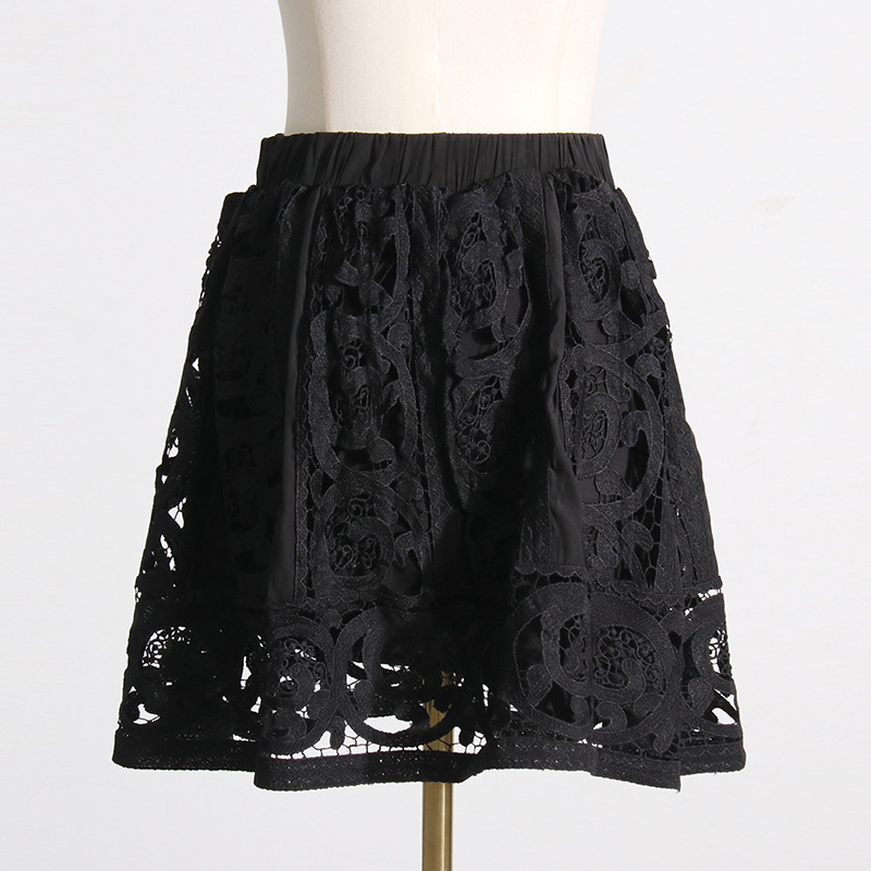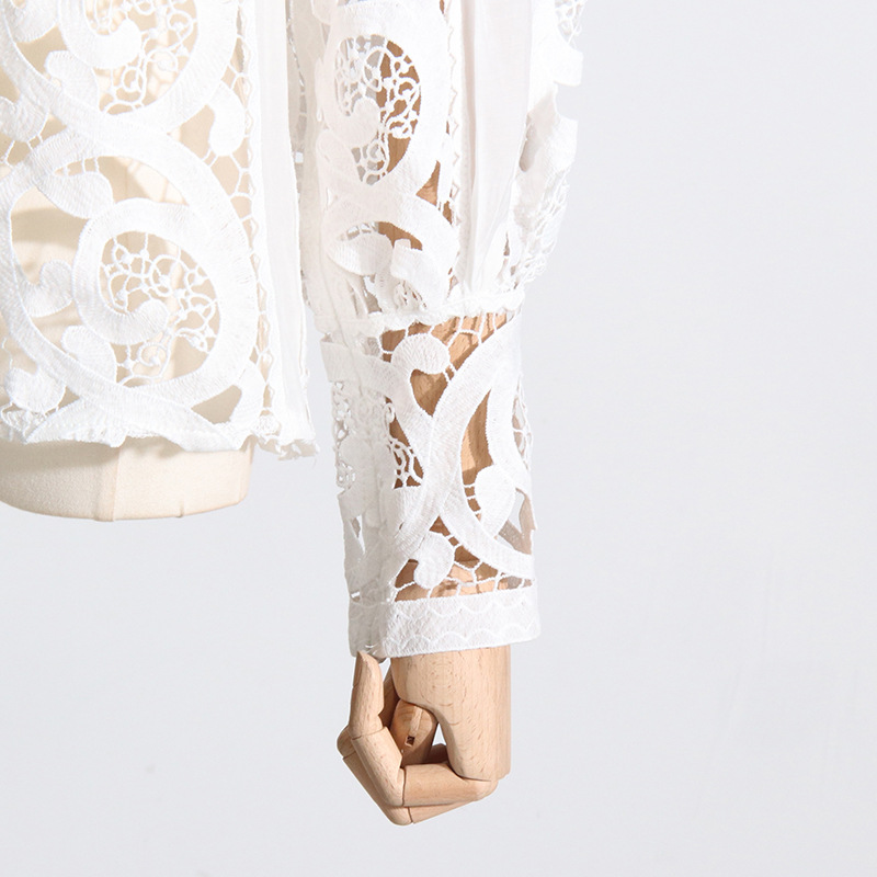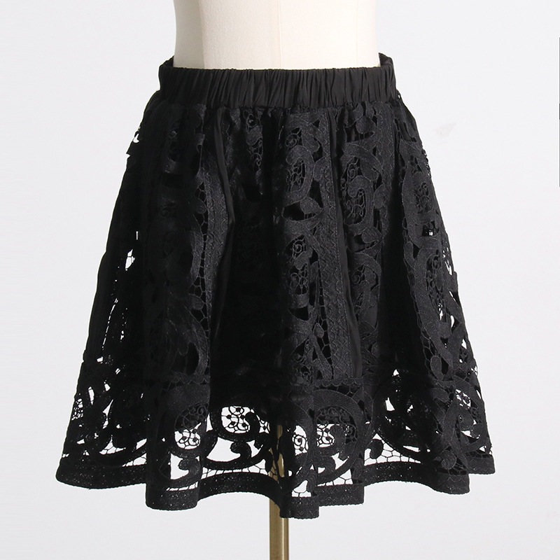 French Vintage Court Two Piece Set Stand Collar Hollow Out Cutout out Shirt High Waist Embroidered Skirt Sets