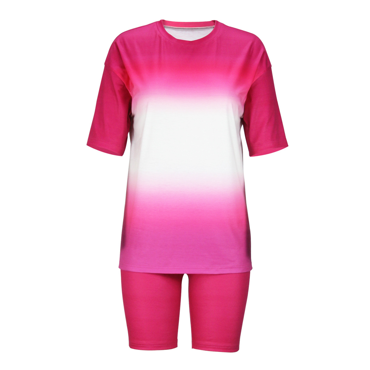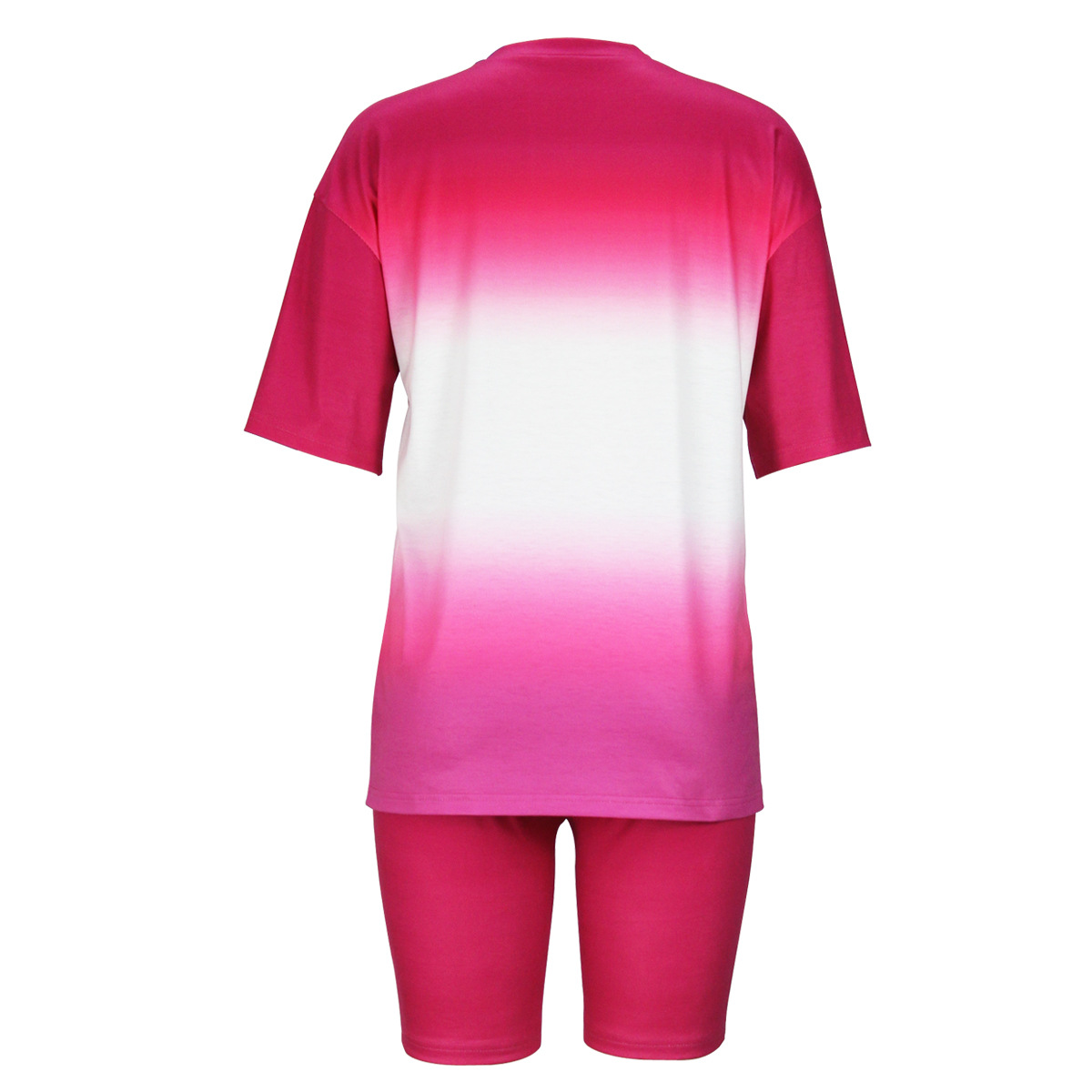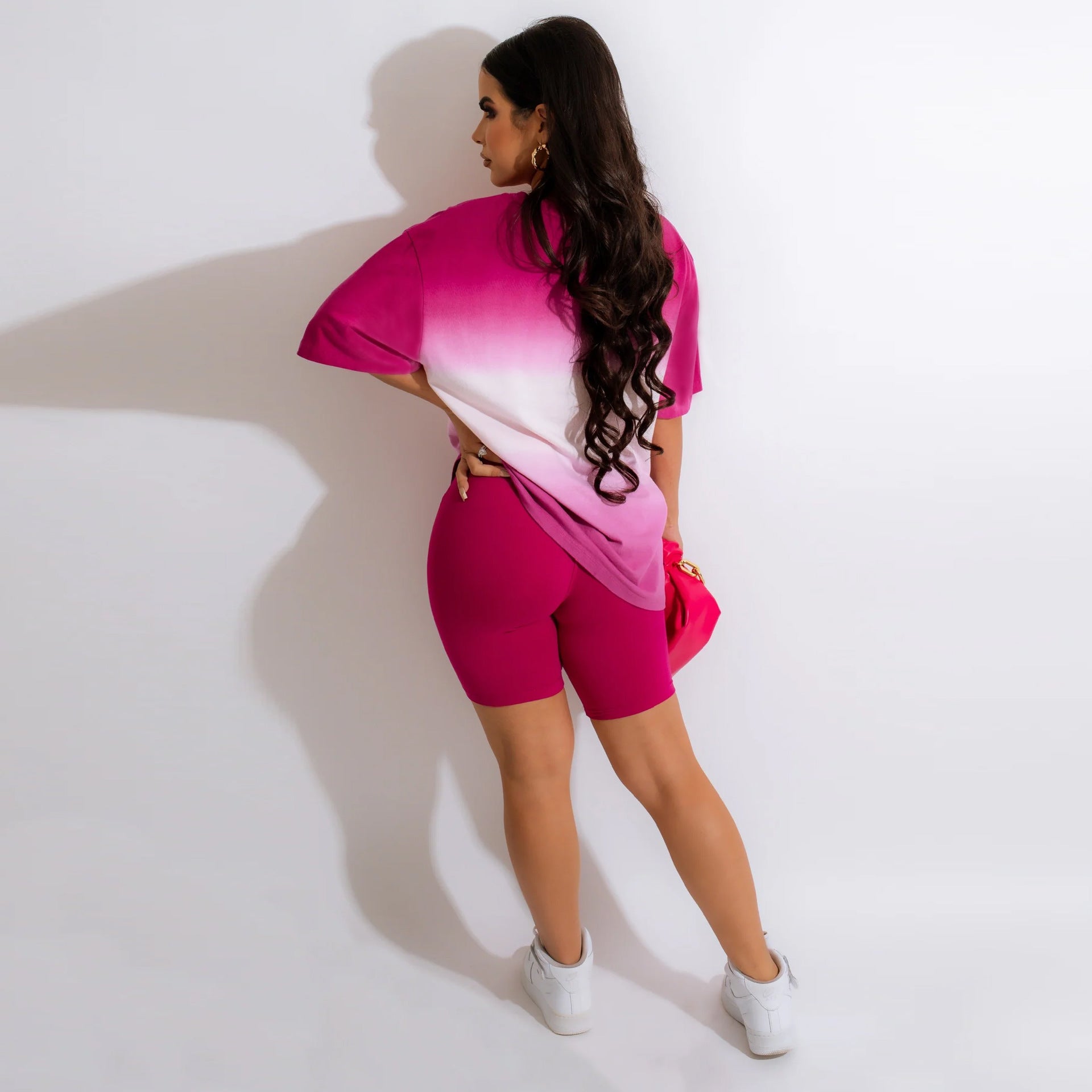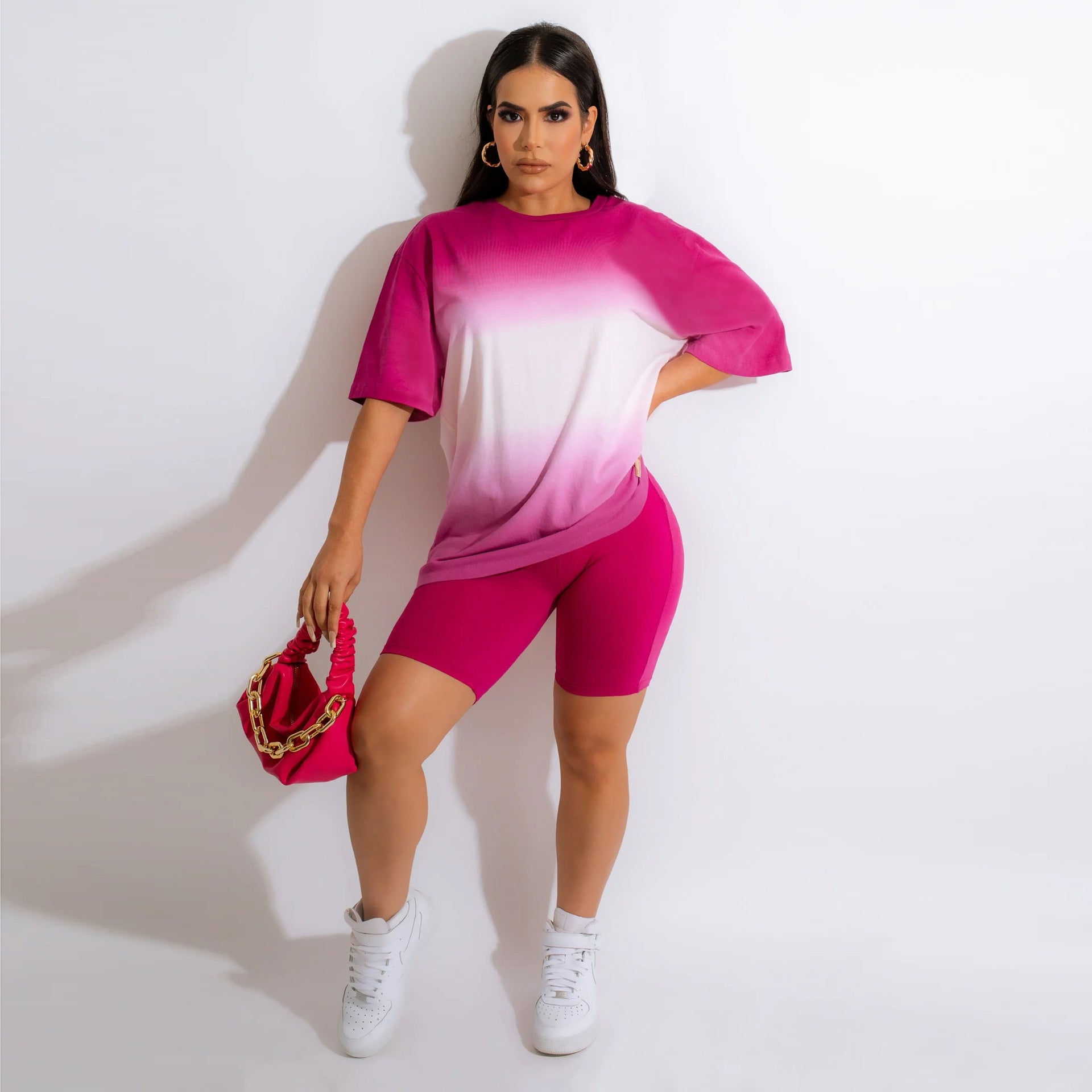 Gradient Color Printed Short Sleeve Summer Suit Slim T shirt Shorts Two Piece Set Women