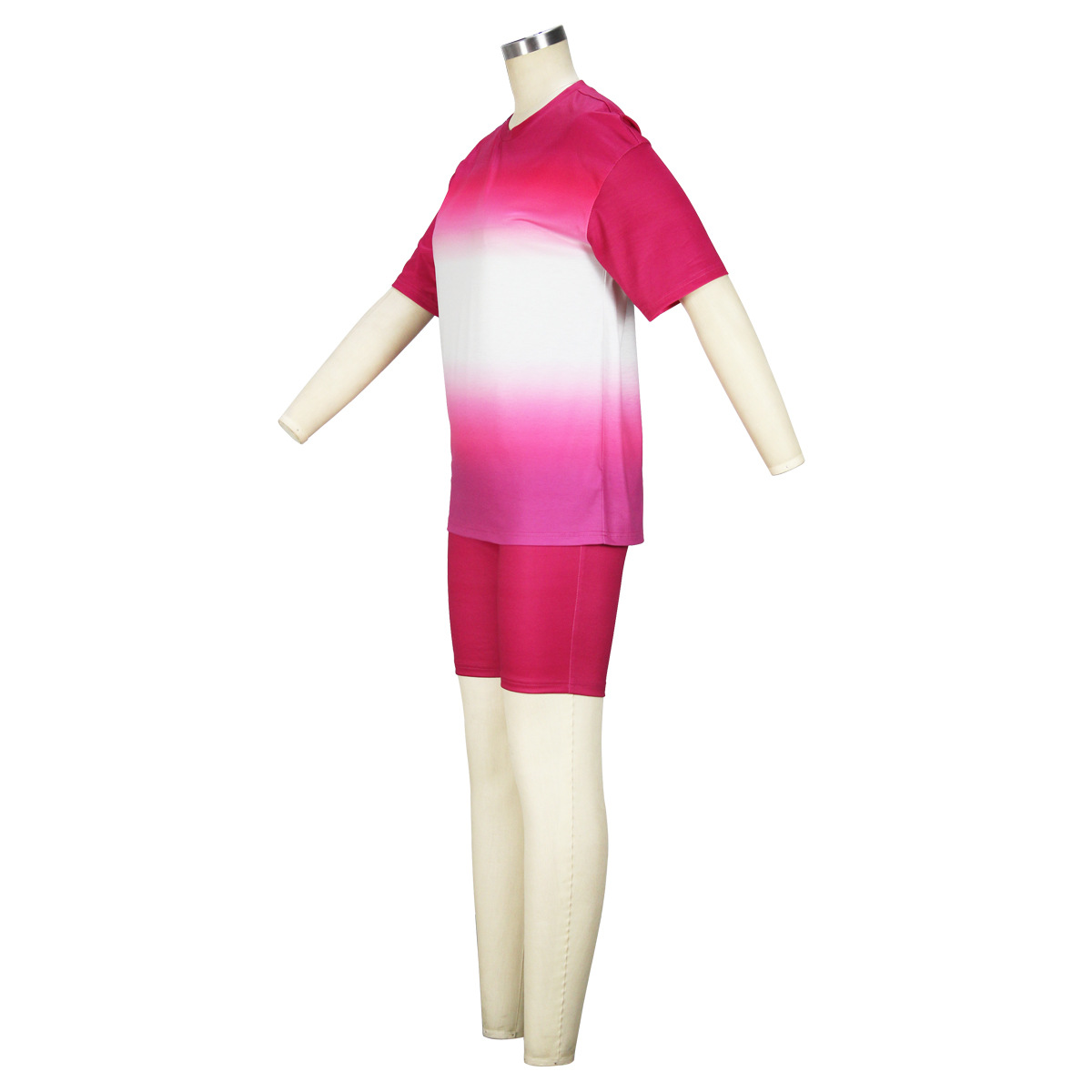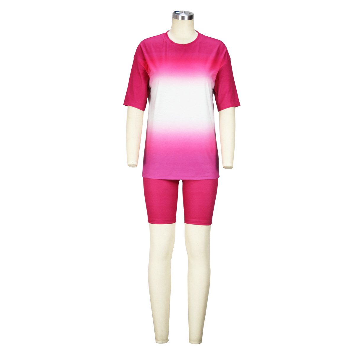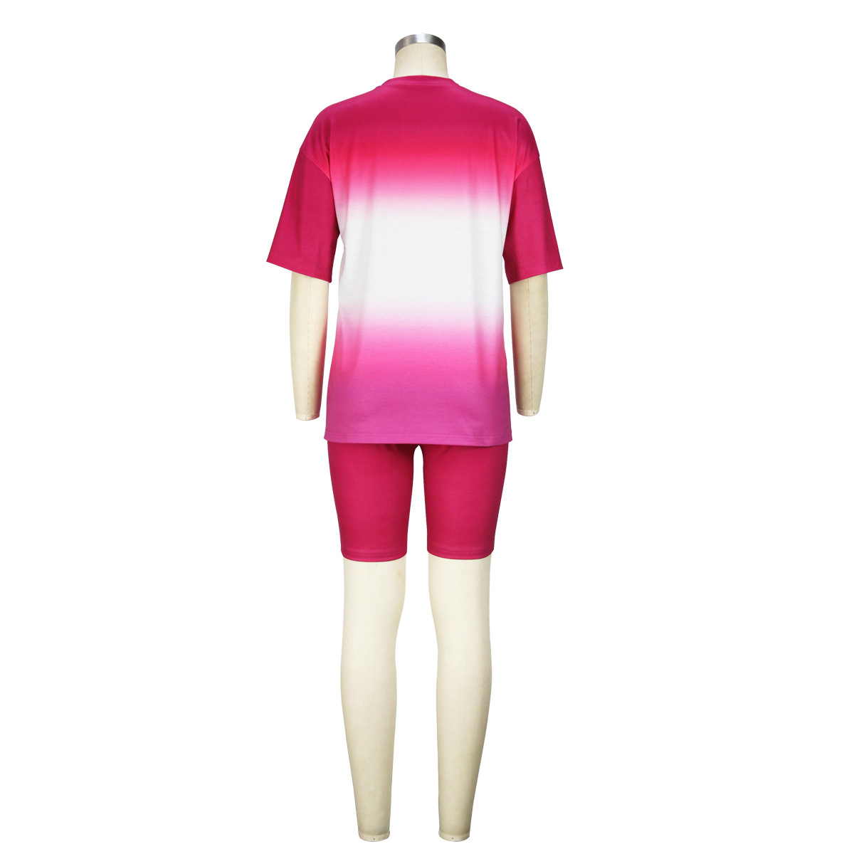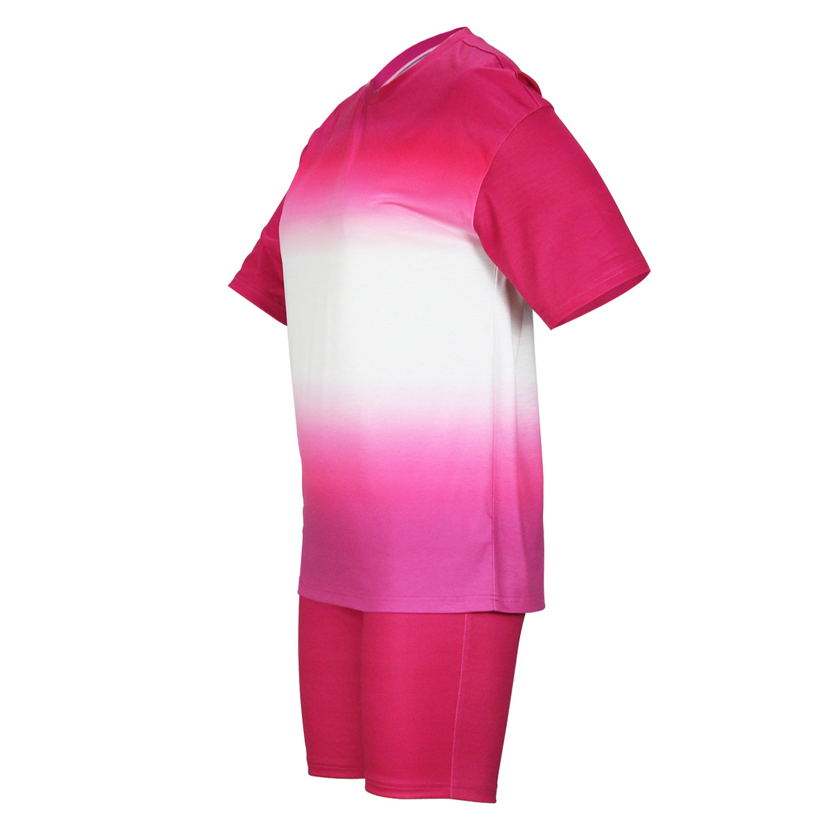 Gradient Color Printed Short Sleeve Summer Suit Slim T shirt Shorts Two Piece Set Women