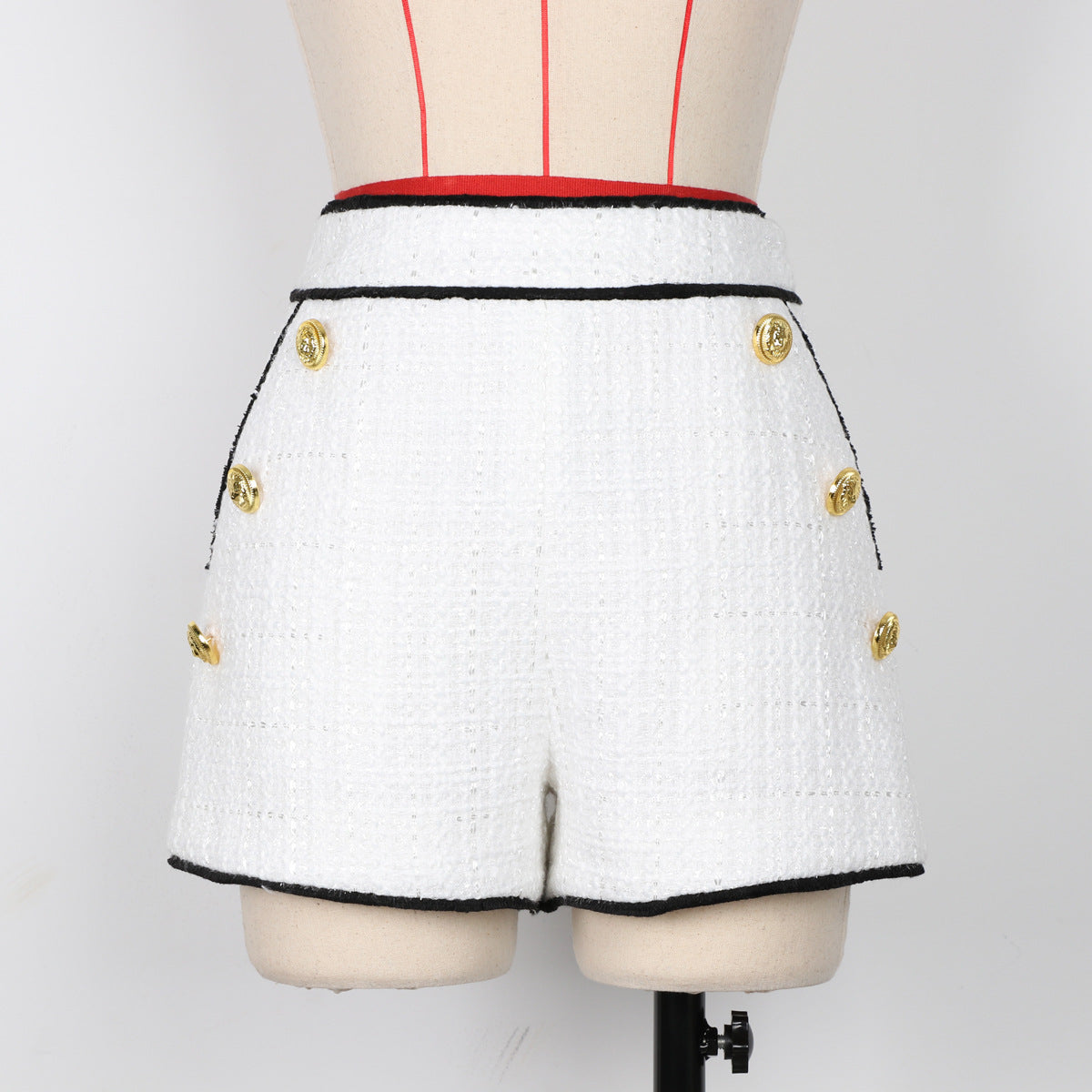 High End Women Tweed Waist Slimming Women Business Shorts Blazer Suit Set