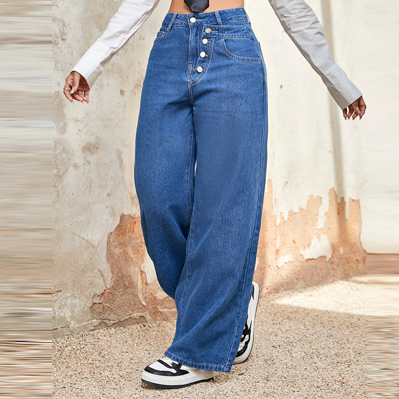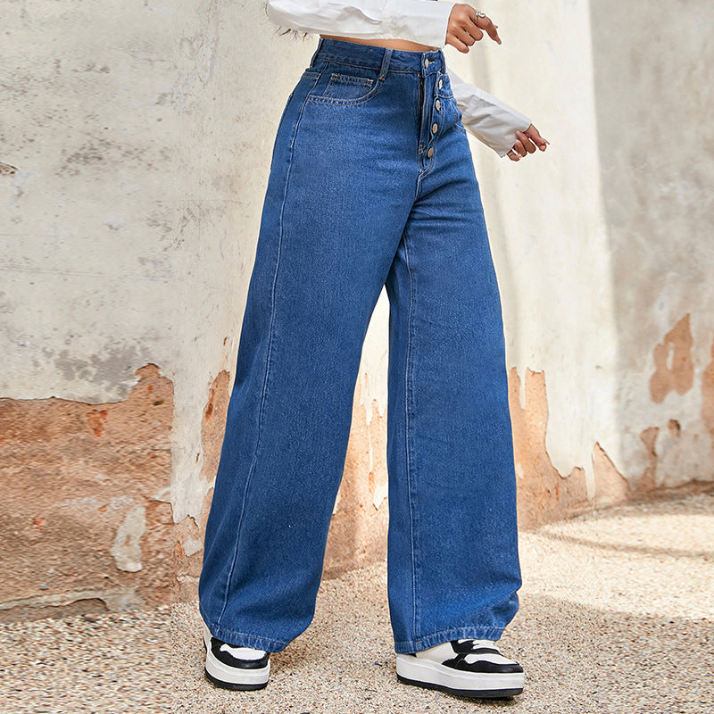 High Waist Jeans Autumn Loose Straight Trousers Draping Single Breasted Mop Pants High Waist Slimming Wide Leg Pants