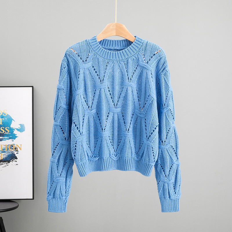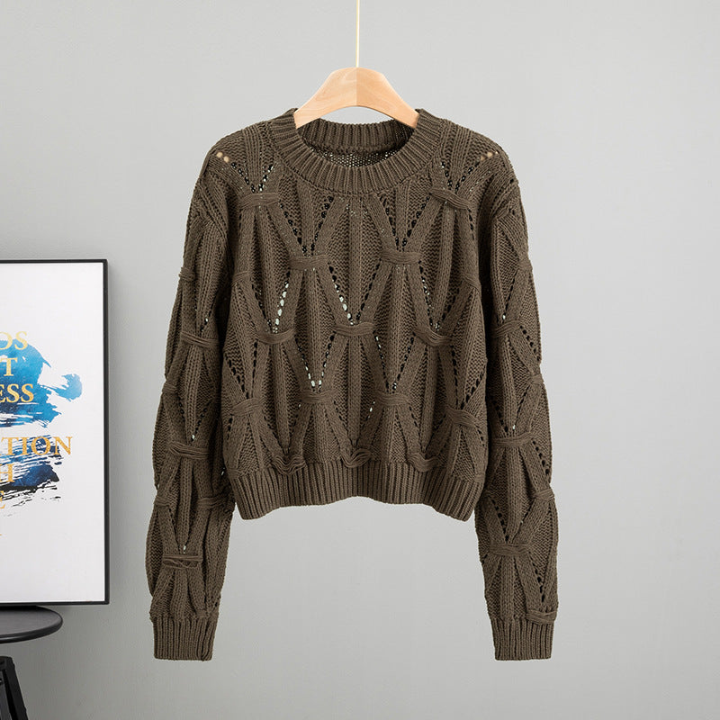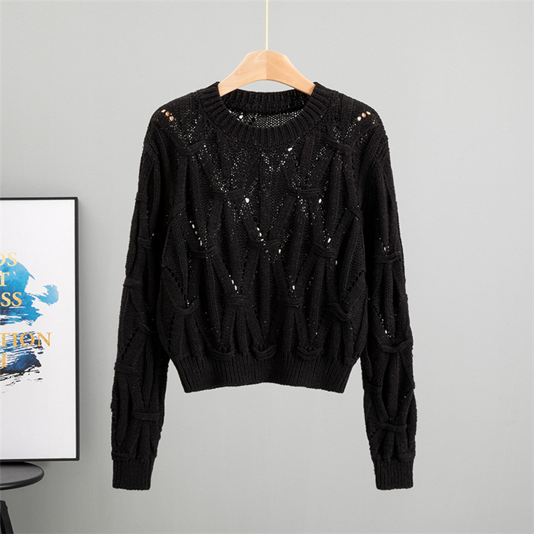 Hollow Out Cutout out Long Sleeved Sweater Women Short Autumn Winter Niche Bottoming Sweater Pullover