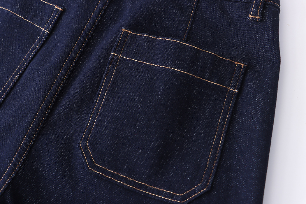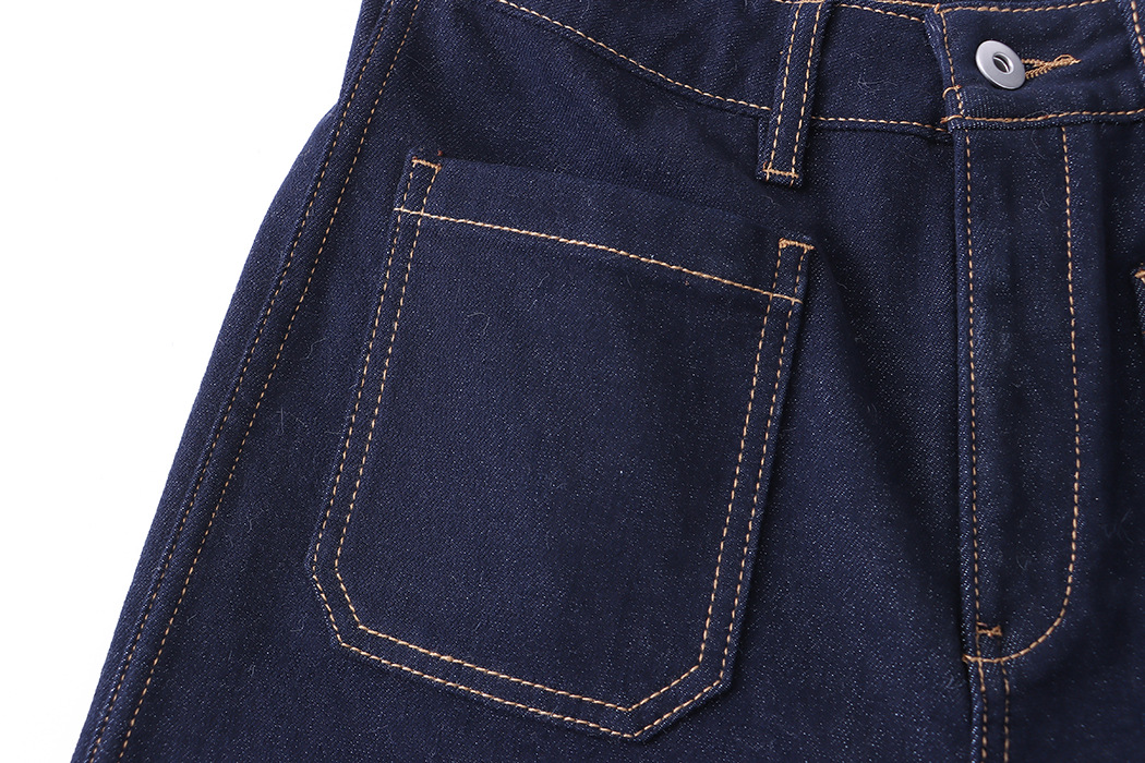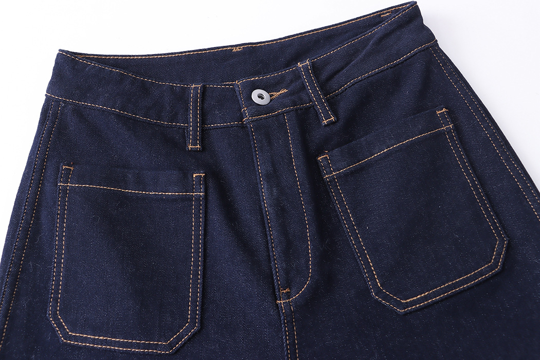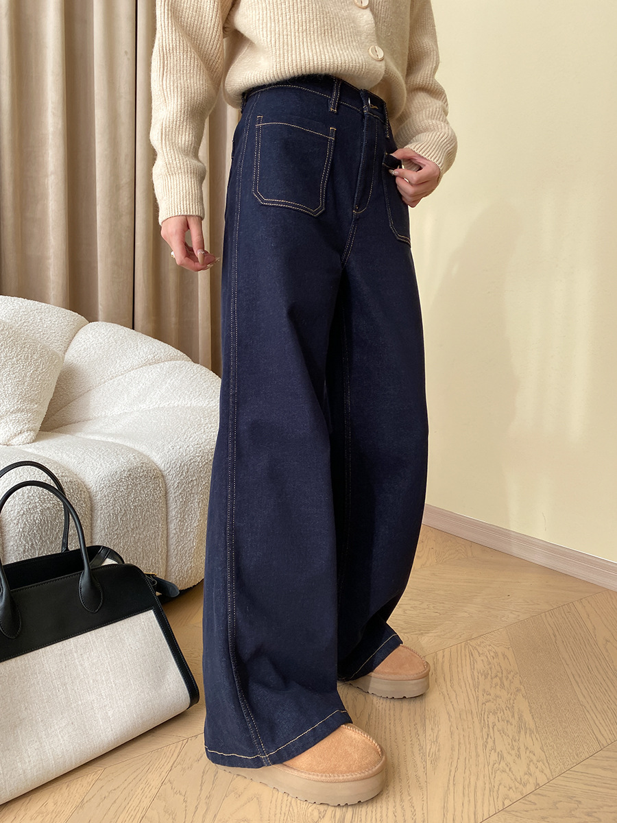 Ide Out Wear Retro Bright Line Double Pocket Design Fleece Straight Wide Leg Jeans