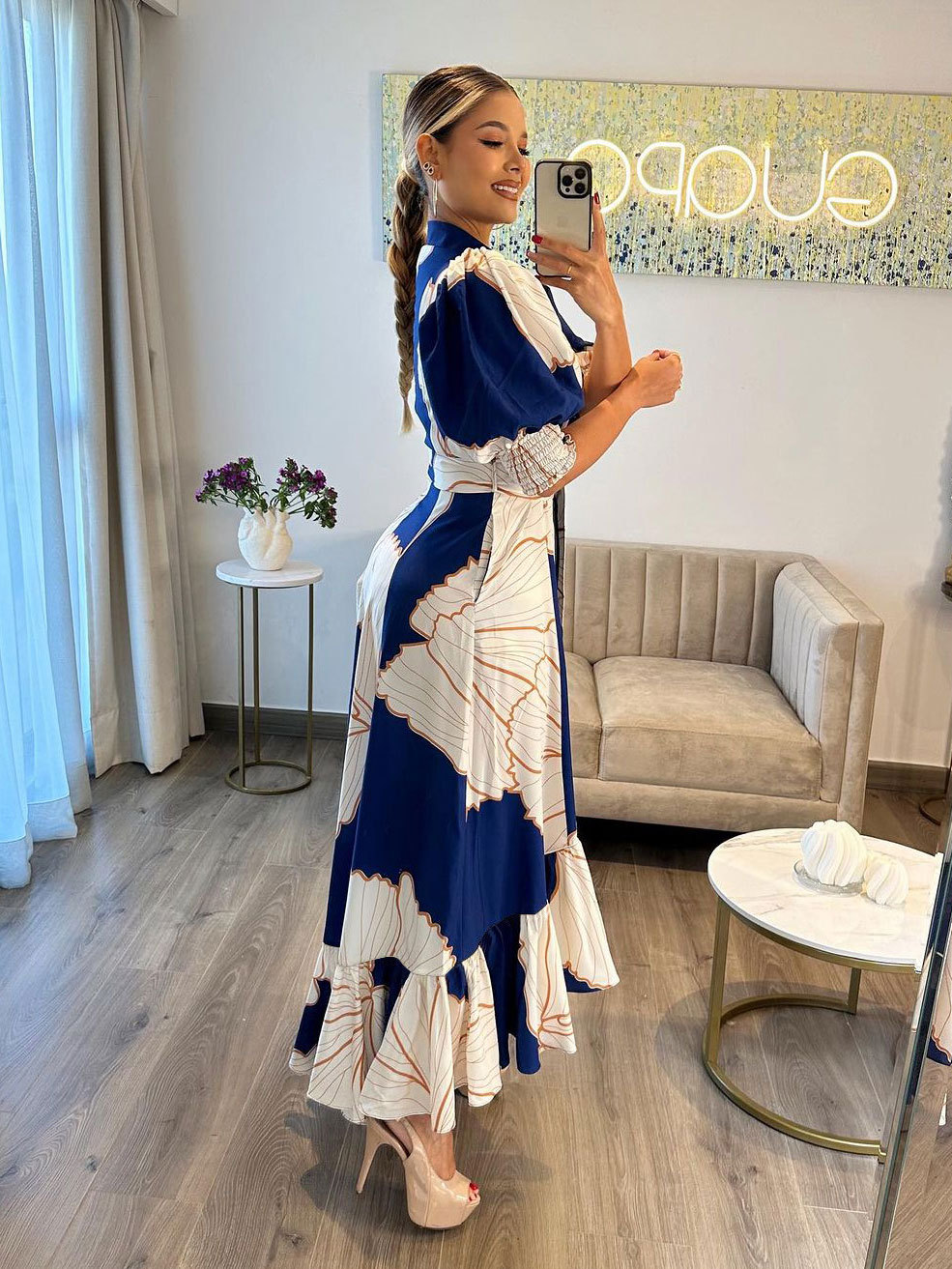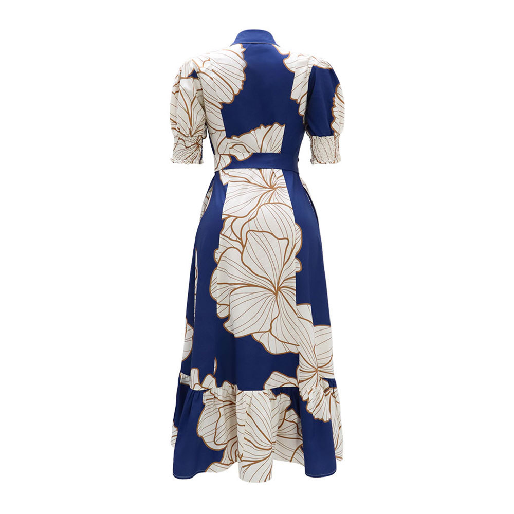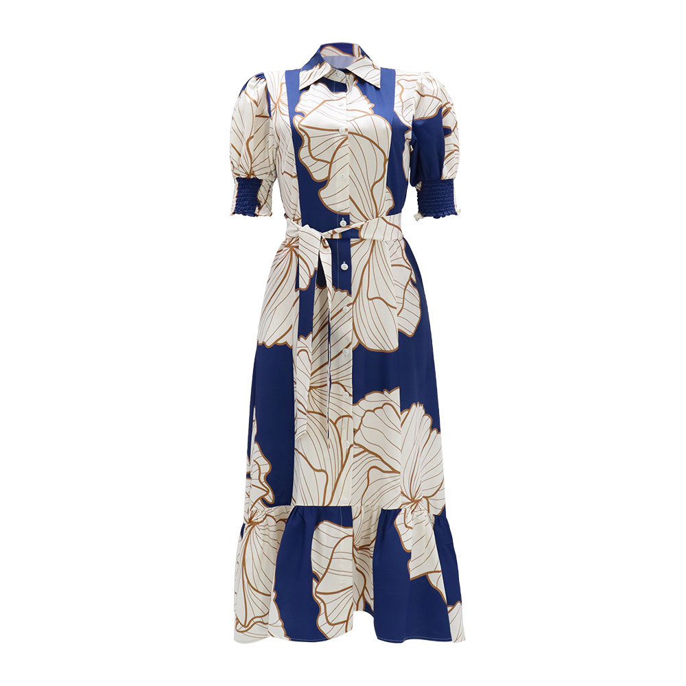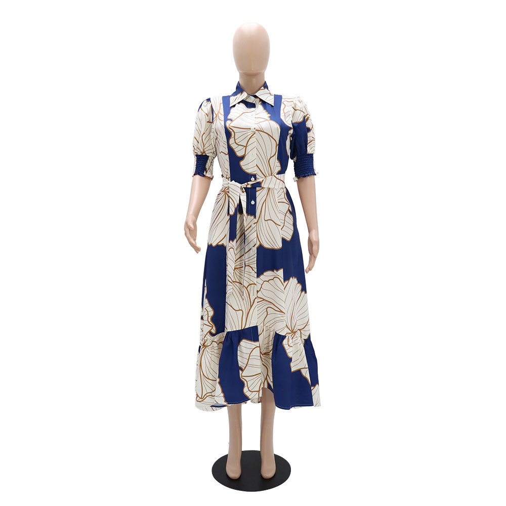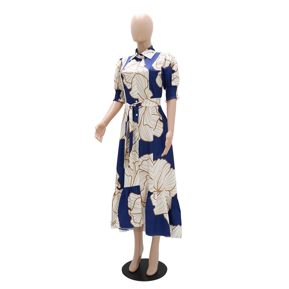 Irregular Asymmetric High Waist Elegant Shirt Cardigan Printed Dress Dress