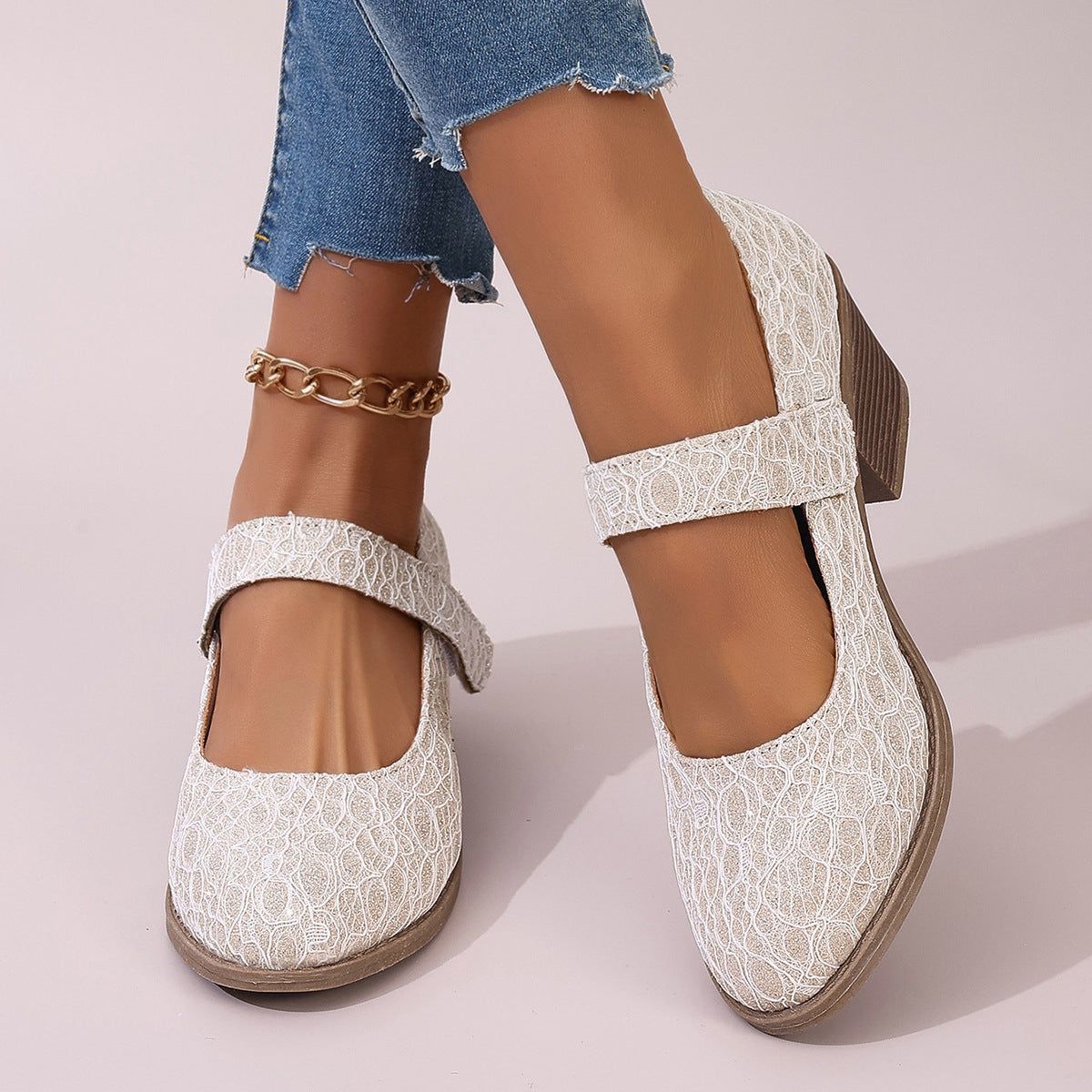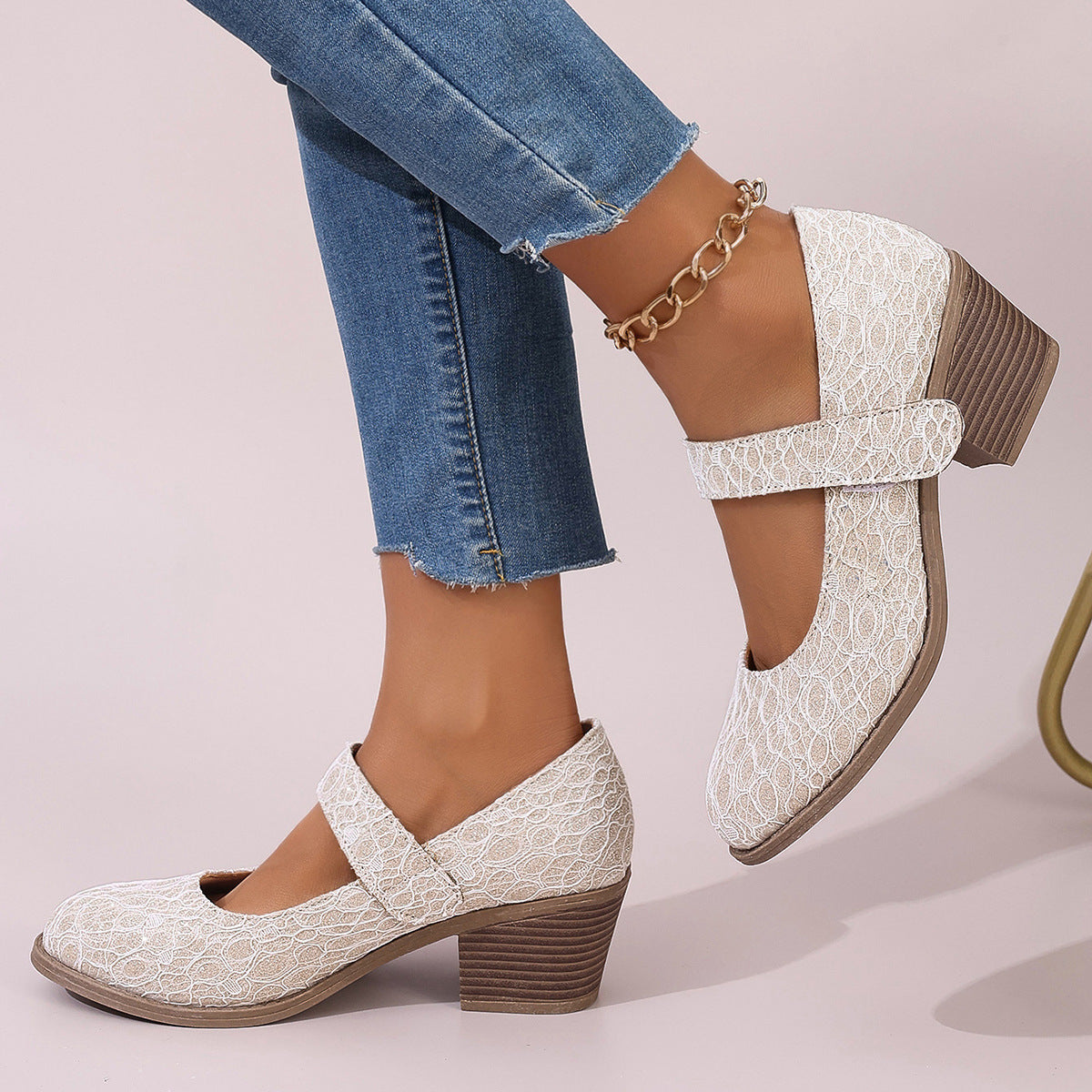 Khaki Mesh Glittering Powder Cloth Women High Heel Pumps Chunky Heel Height Increasing Women Pumps Pumps round Head GREAT