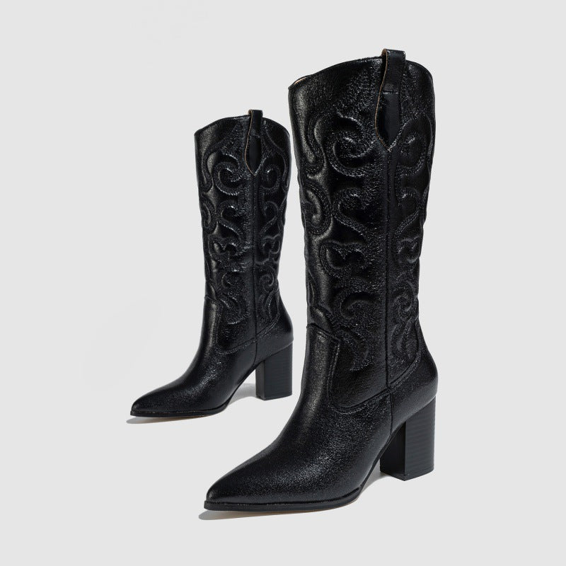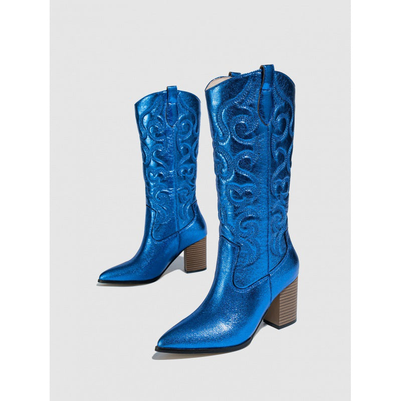 Knee High Boots Thick Sponge Soft Embroidered Floral Personality Pointed Chunky Heel High Heel plus Size Boots Ethnic